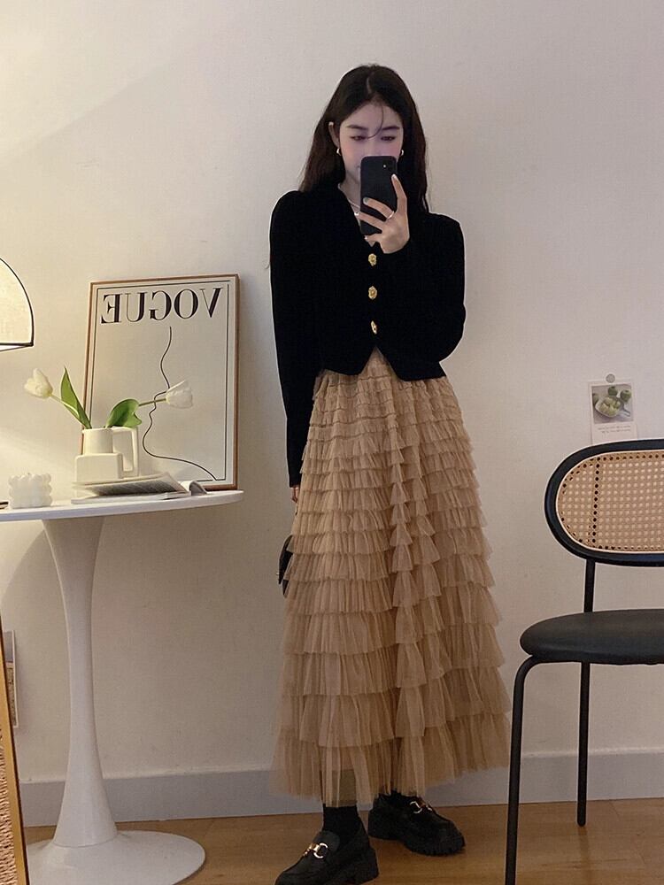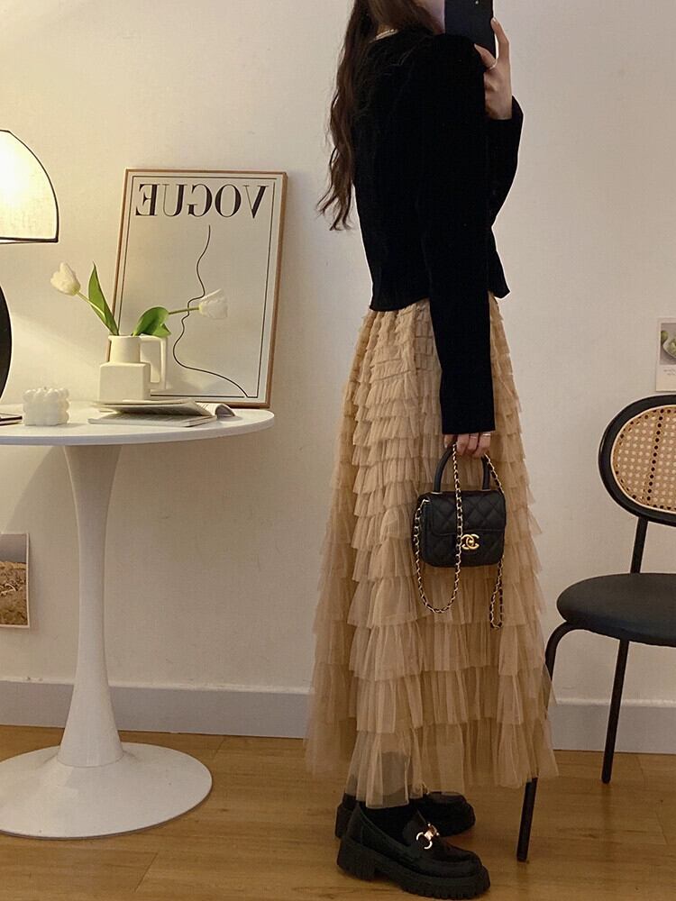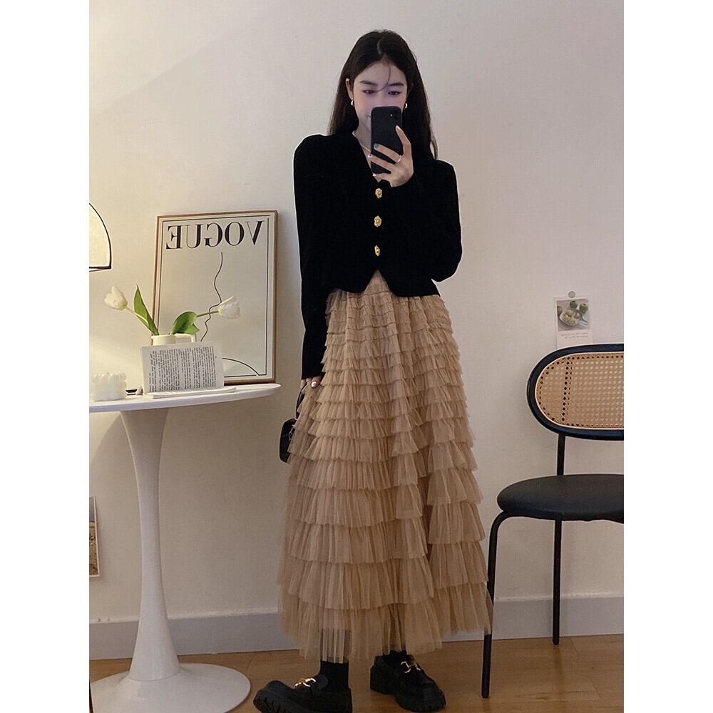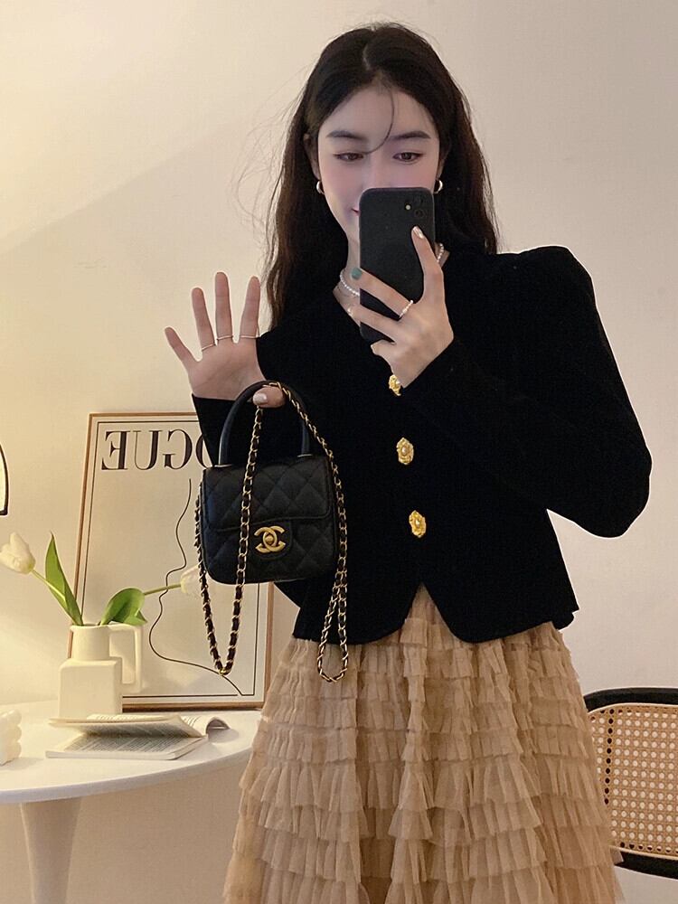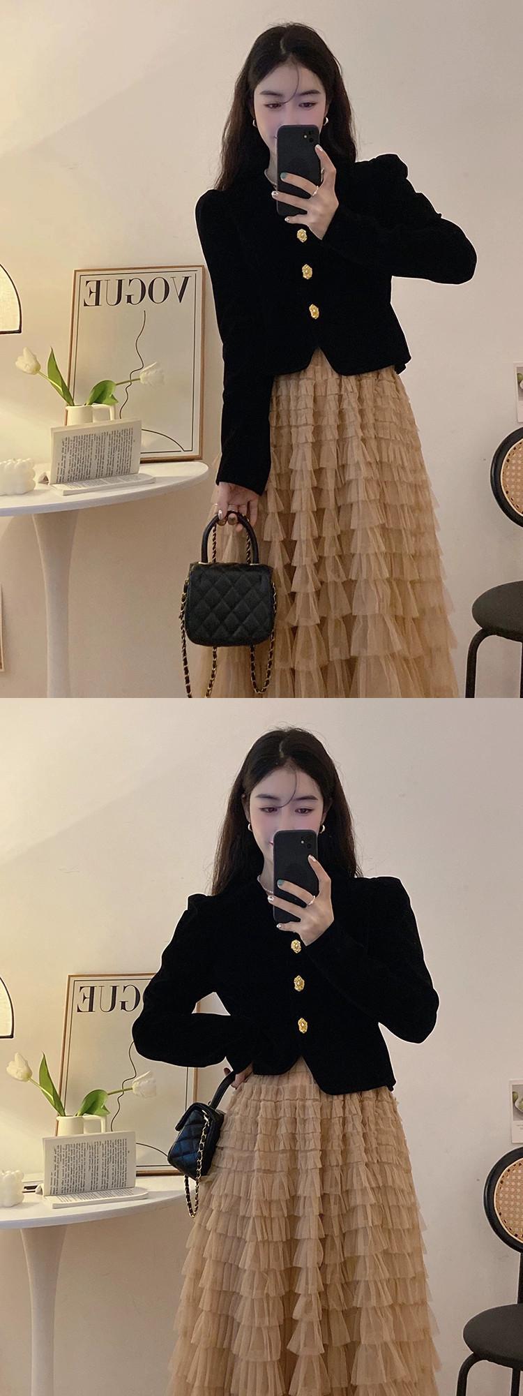-エンドスーツレディース、春フレンチVネックベルベットショートシャツ、メッシュケーキスカート、ファッショナブルな2点セット スプリング 春物 missk5320259029