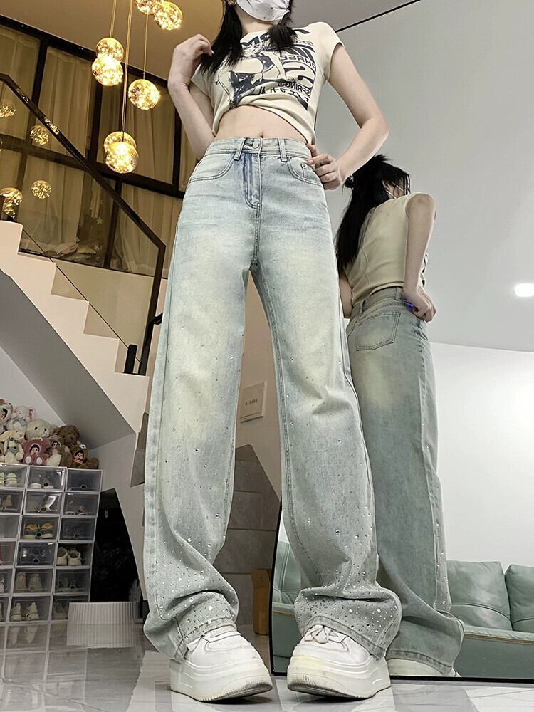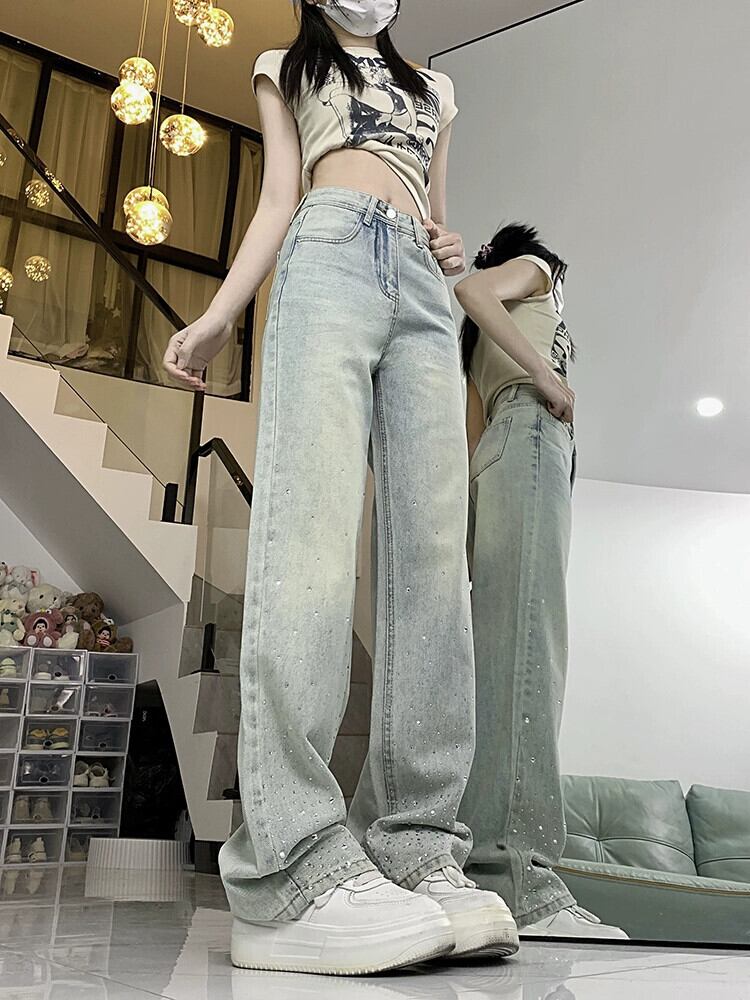 ダイヤモンドストレートジーンズ女性 2024 春の新ファッションハイウエストスリムニッチシックなロングパンツ ハイウェスト スプリング 春物 missk48012705850