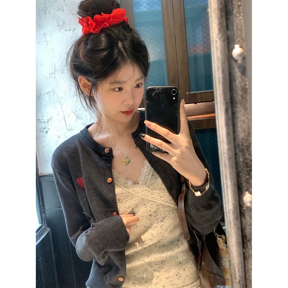 色:白いスカート,スリング,グレーのカーディガン