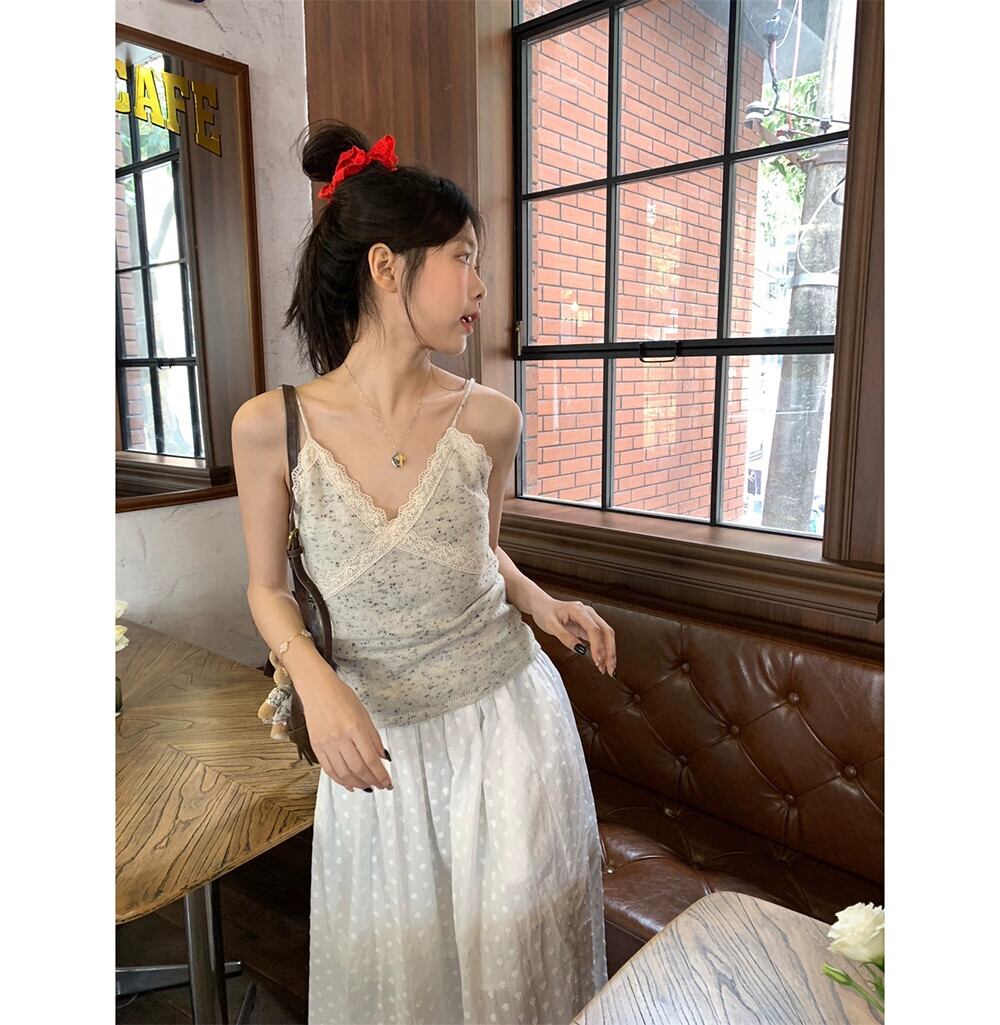 甘くてスパイシーな花柄キャミソール女性の夏の純粋な欲望レース V ネックショートノースリーブトップ 半袖 ハーフスリーブ 大人ガーリー スウィート キュート カジュアル サマー 夏物 Vネック ピュア missk74062557390