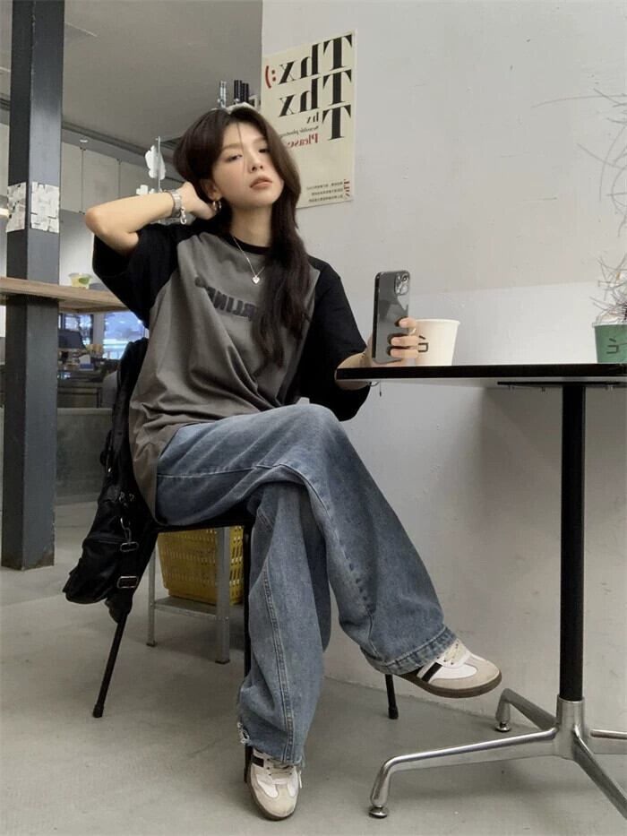 アメリカのカラーブロック半袖 Tシャツ女性の夏の 2024 新デザインレタープリントルーズカジュアルラウンドネックトップ サマー 夏物 Oネック missk23486940632