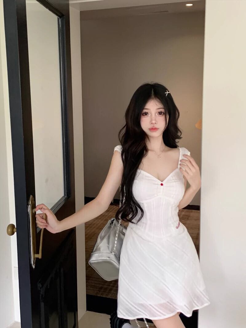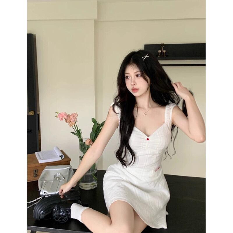 刺繍スタイル V ネックドレス 2024 年初春の新しいハイウエストスリム痩身ハイエンドサスペンダースカート女性 レッド スプリング 春物 Vネック missk38622753623