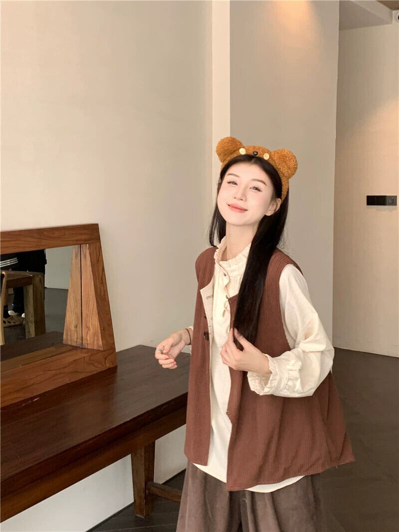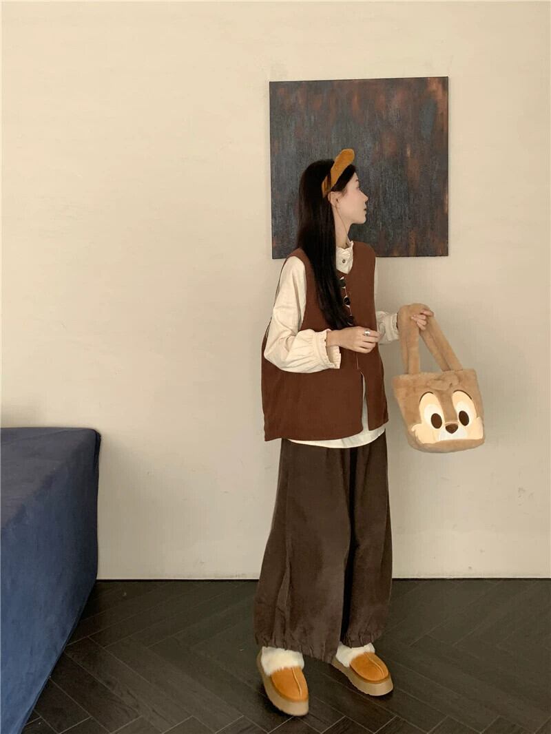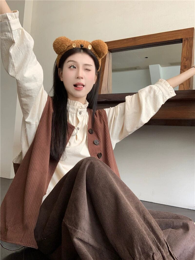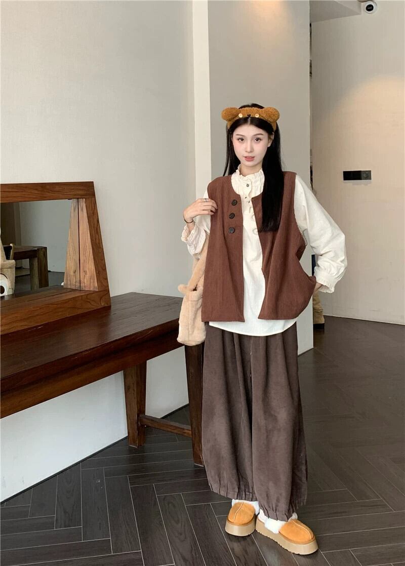 レトロコーデュロイアウターベストベストシャツハイウエストブルマ女性春 2024 新しいファッション 3 点セット ハイウェスト スプリング 春物 ショーツ ブルマー missk64442371784