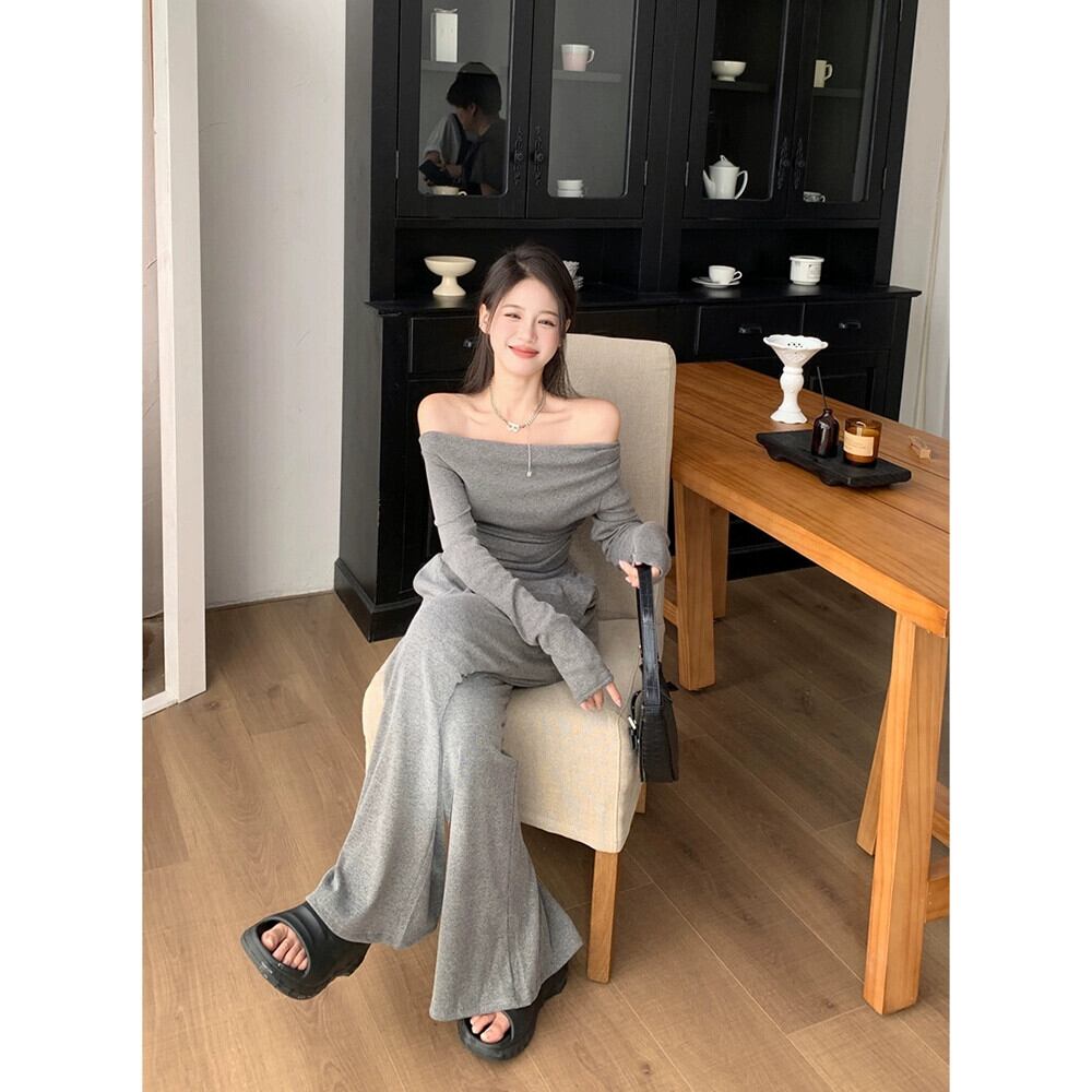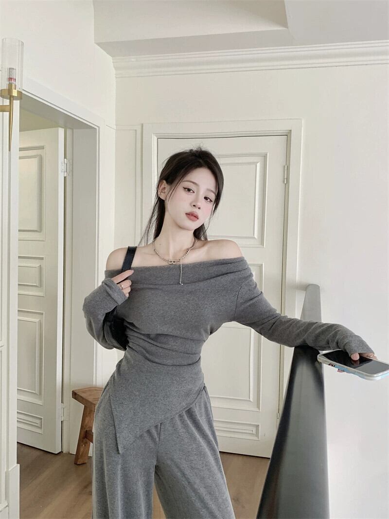 -エンドスーツレディース、早春の気質、ワンショルダー、スリム、イレギュラートップ、ワイドレッグパンツ、フロアレングスパンツ2点セット スプリング 春物 missk6100311239