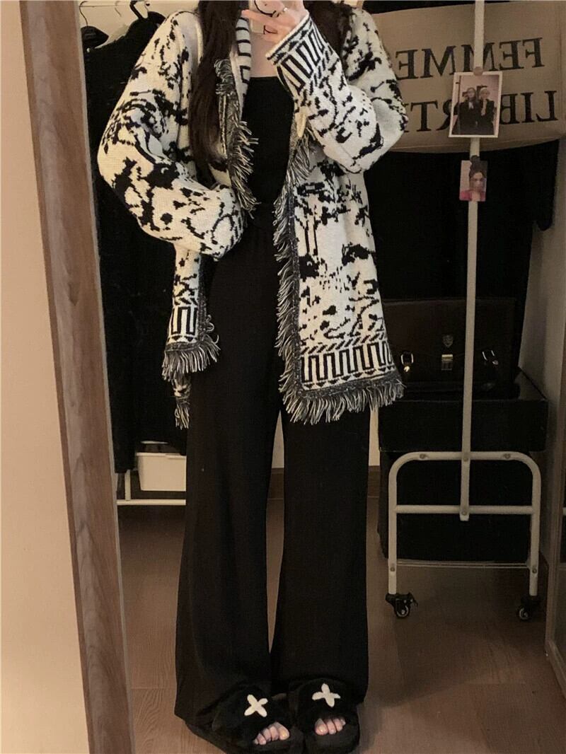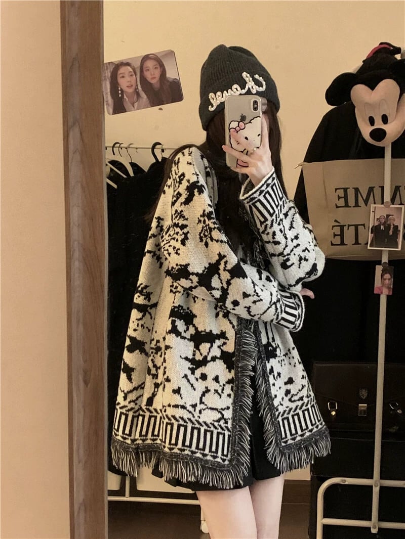 Tel ジャカード長袖セータージャケット女性春レトロ 2024 新デザインファッショナブルなミッドレングストップトレンディ ロング スプリング 春物 missk74692315063