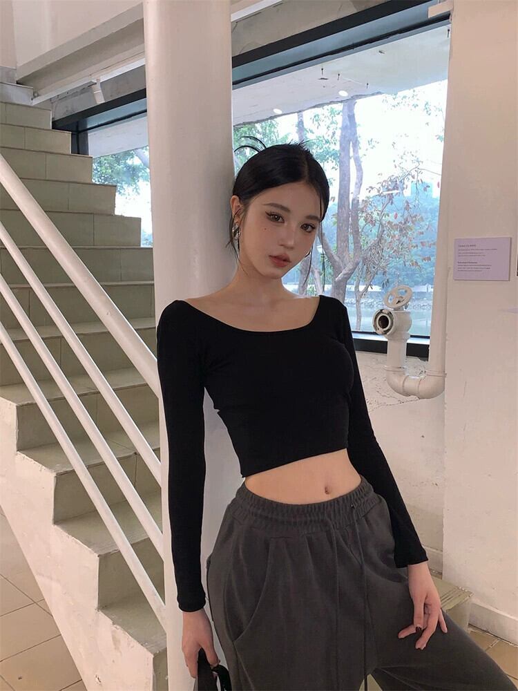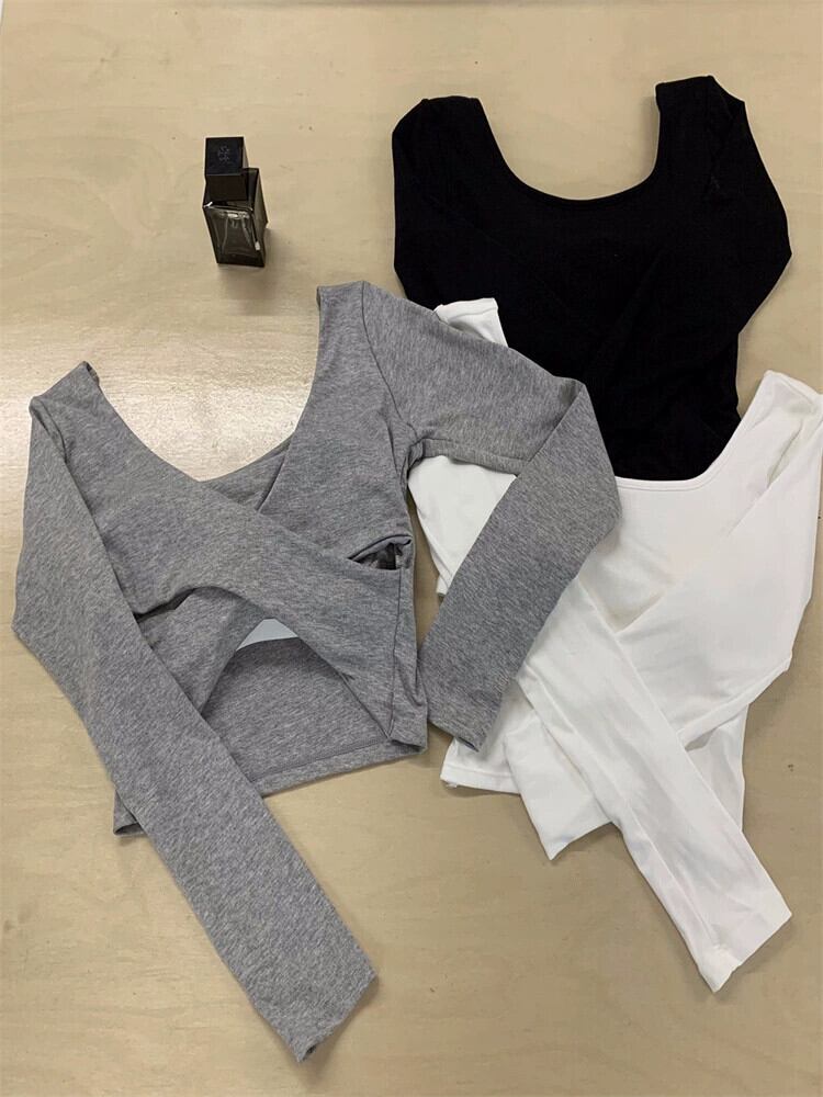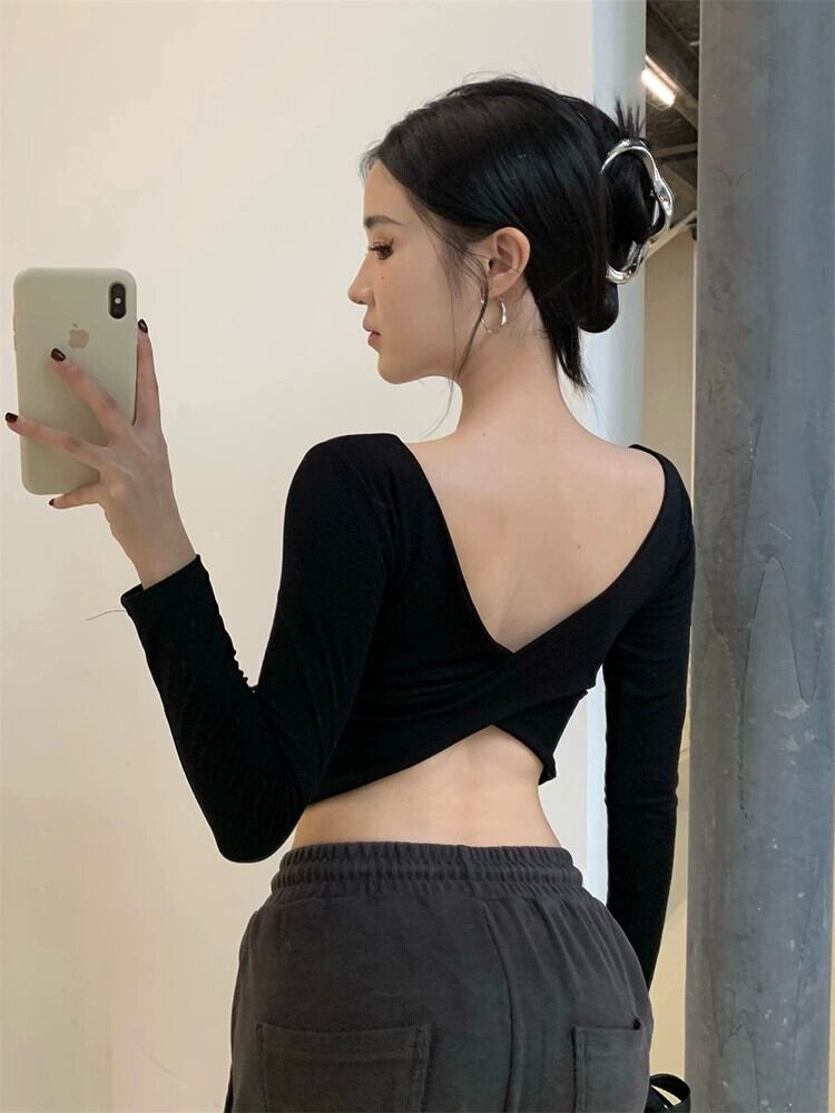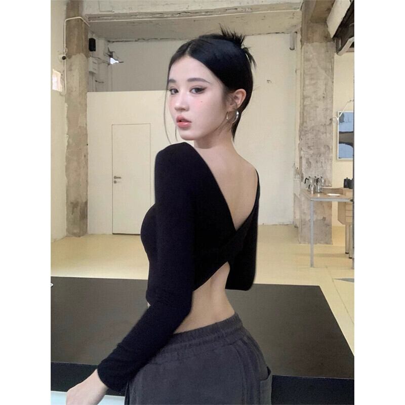 セクシーなクロスバックレス Tシャツ女性の春のホットガールスリムフィットショートトップ長袖インナーボトリングシャツ ロング スプリング 春物 missk48803027360