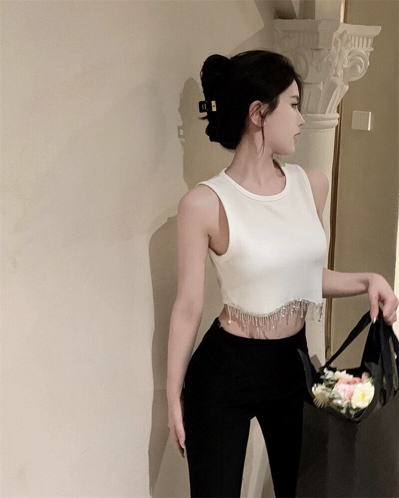 重工業テルラインストーンタンクトップ女性春の新レトロデザイン痩身インナートップ スプリング 春物 missk29548851969