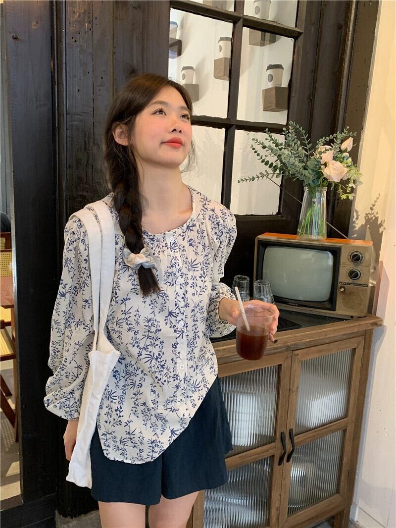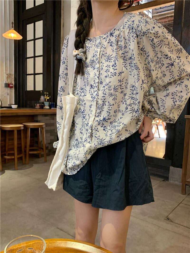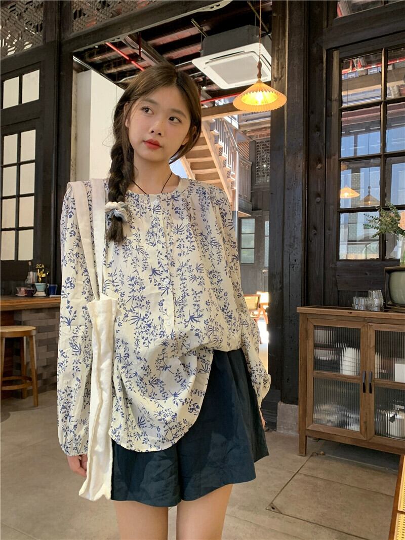 ルーズ花柄長袖シャツ女性 2024 春の新デザインファッションニッチシックな日焼け止めトップ ロング スプリング 春物 missk64813690112