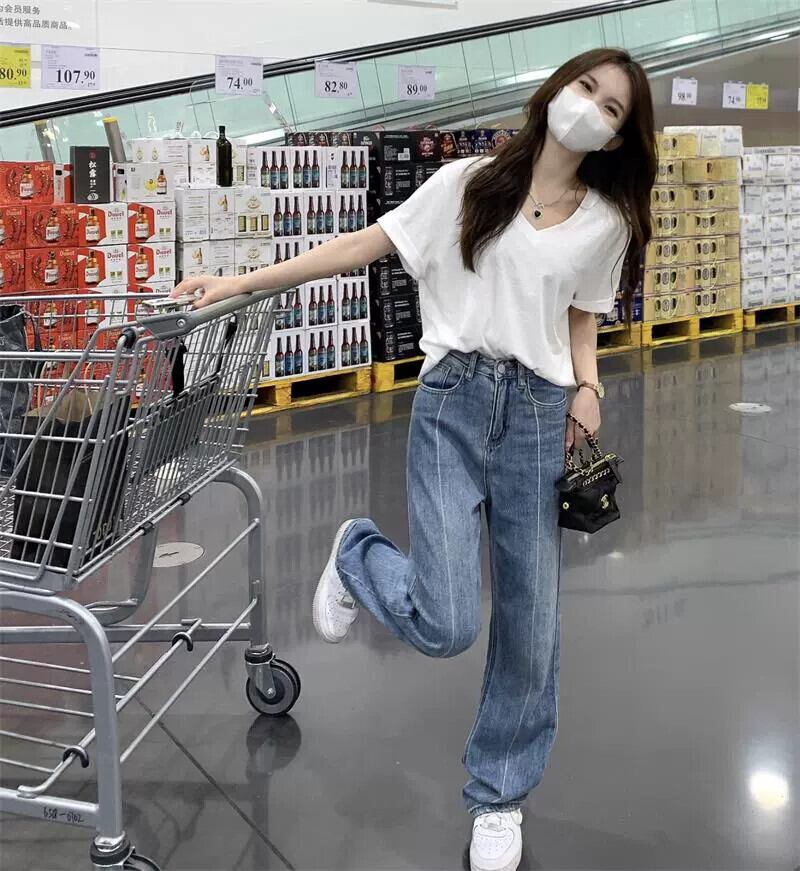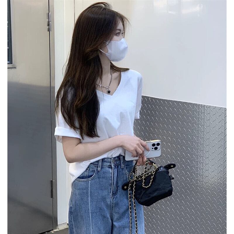 ホワイト V ネック半袖 T シャツ レディース 春バージョン 2024 ニューベーシックスタイル万能半袖トップスインナーウェアとアウターウェア スプリング 春物 Vネック Tシャツ missk55943008788