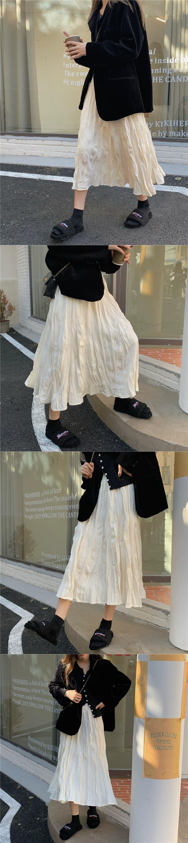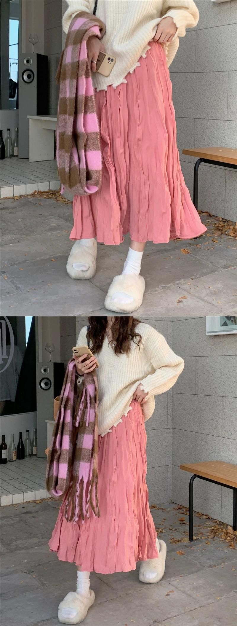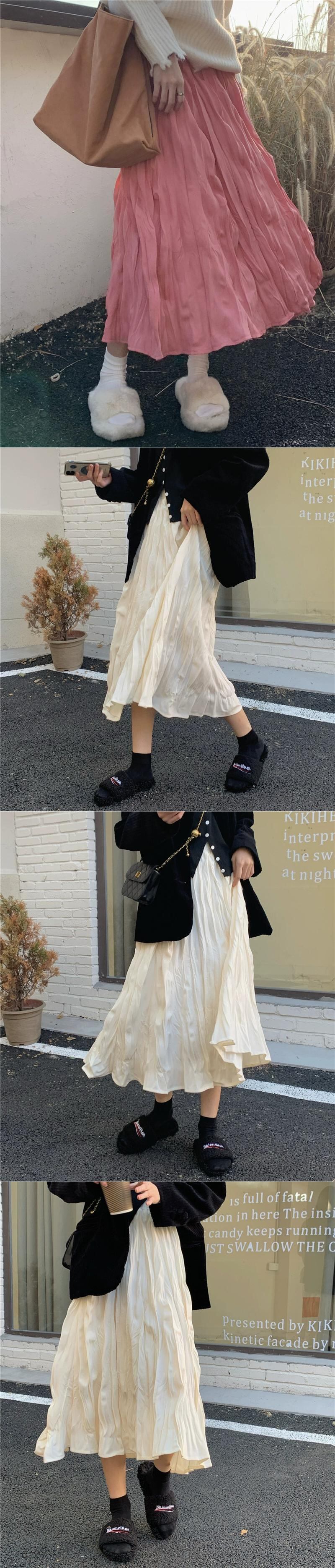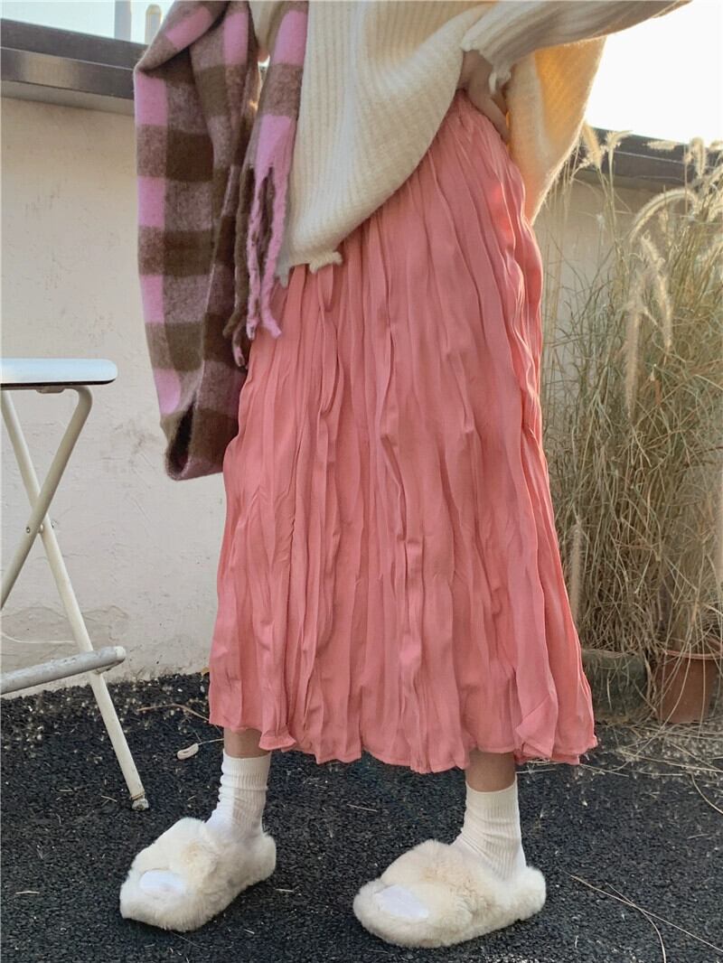 -ウエストスリムスカートレディース、春と秋バージョン2024新しいシックなミドル丈プリーツインスーパーAラインスカート スプリング 春物 オータム 秋物 missk83437488648