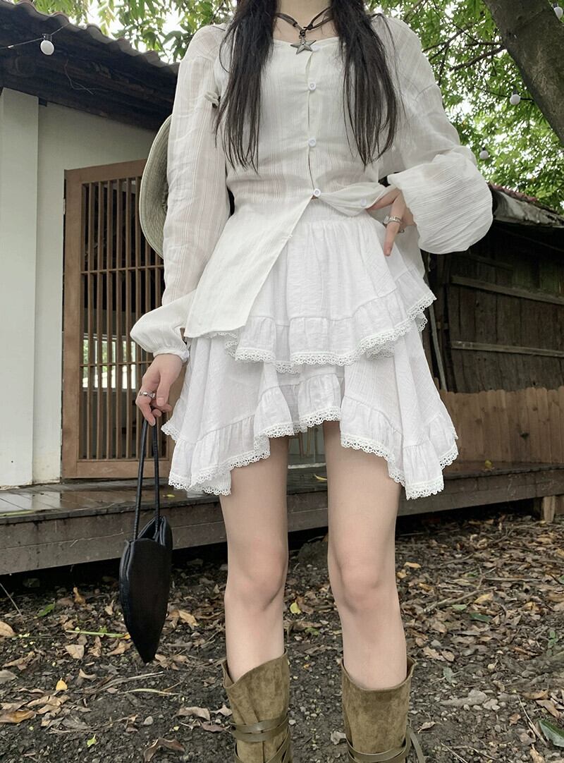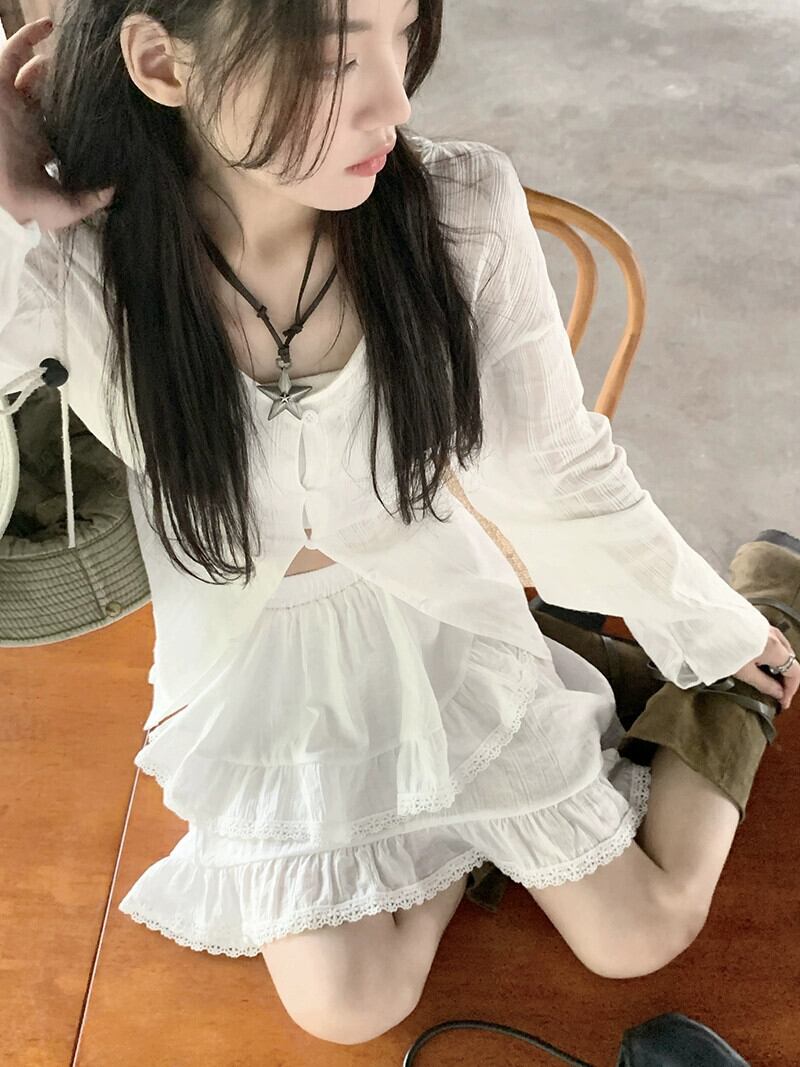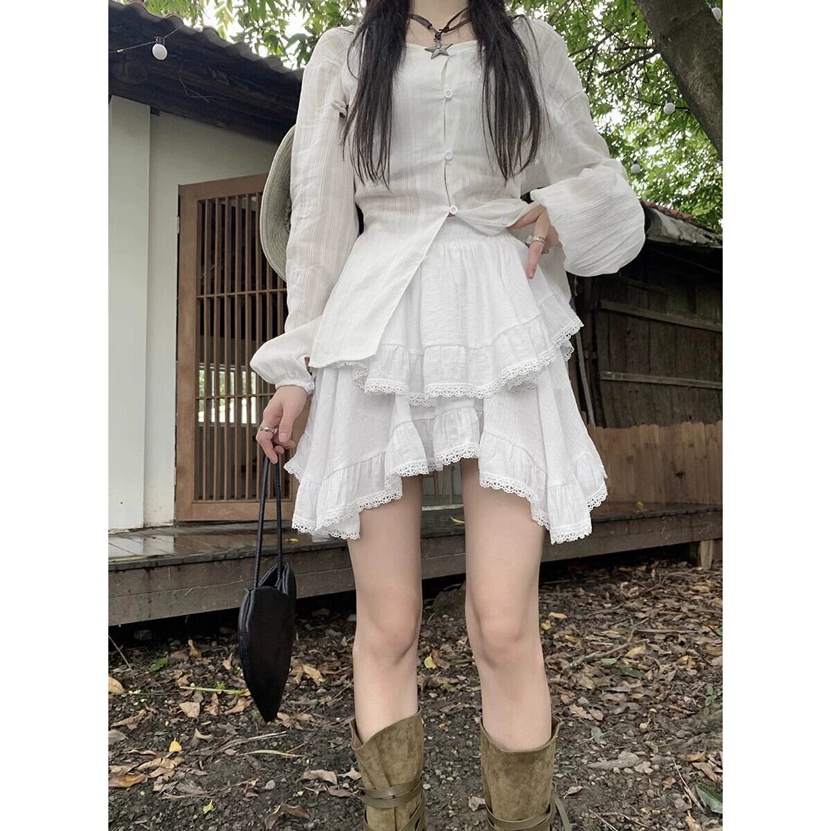 不規則なニッチ白スカート女性早春の新デザインステッチレースハイウエスト多目的ショートスカート ハイウェスト ホワイト スプリング 春物 missk16471517951