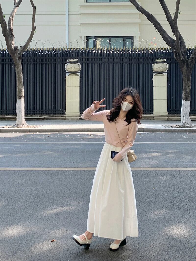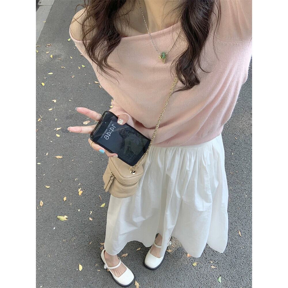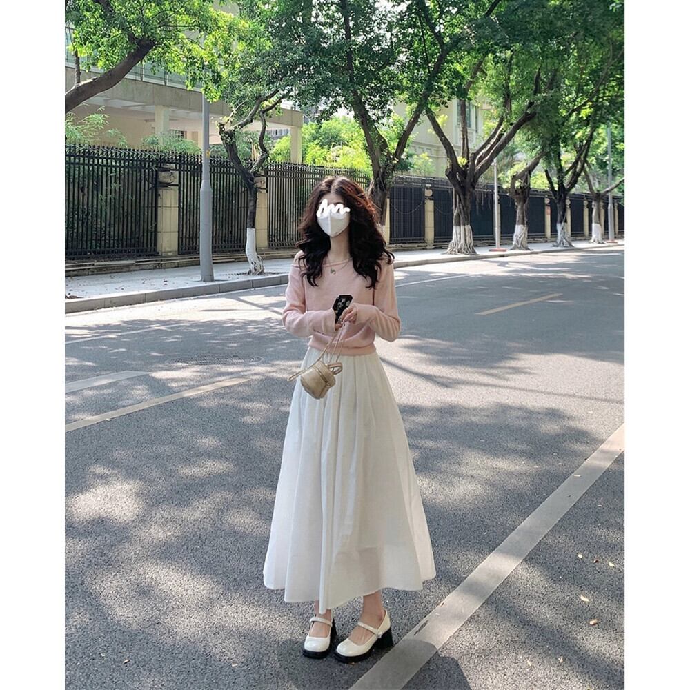 優しいスタイルの白スカート女性春フレンチスリムハイウエスト A ラインスカートデザインスカートミッドレングスアンブレラスカート ハイウェスト ホワイト スプリング 春物 Aライン missk93001147513
