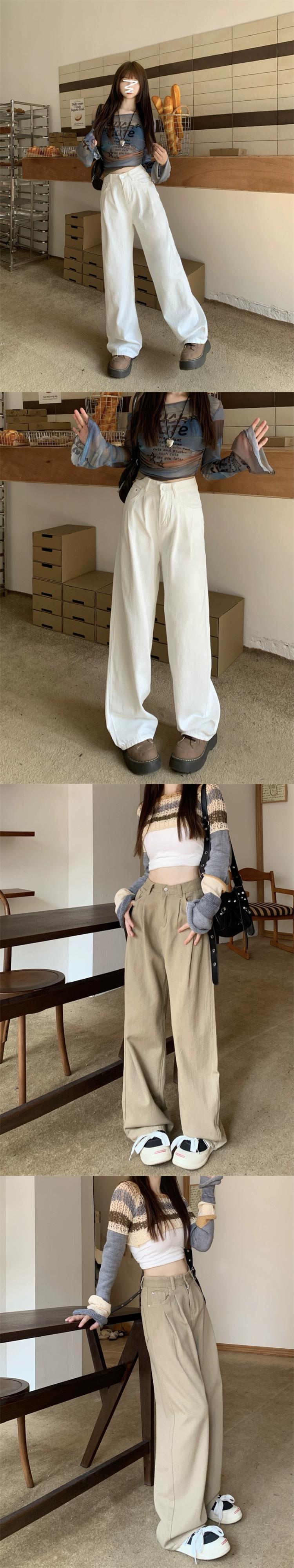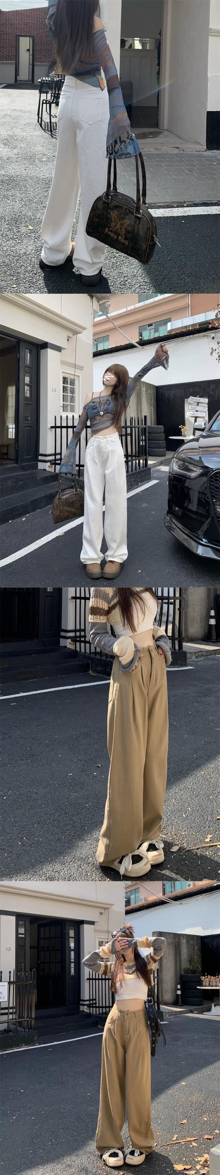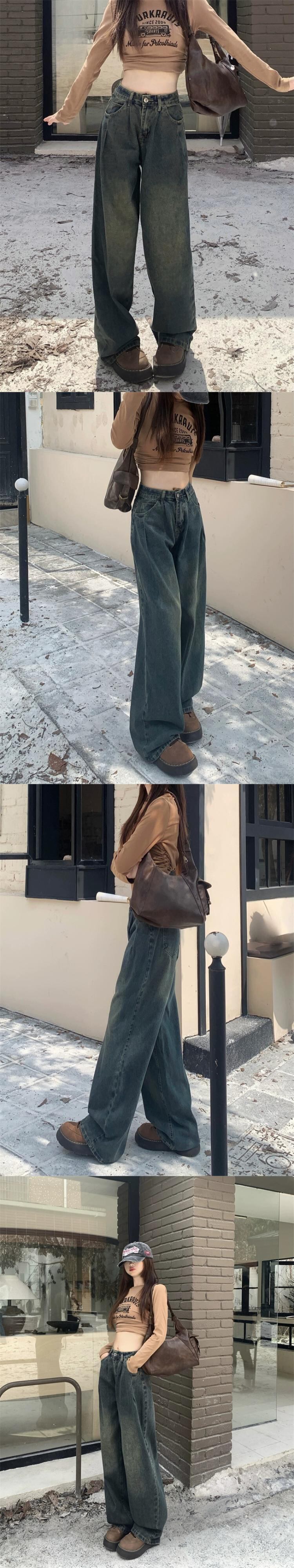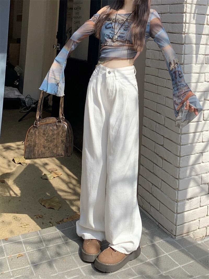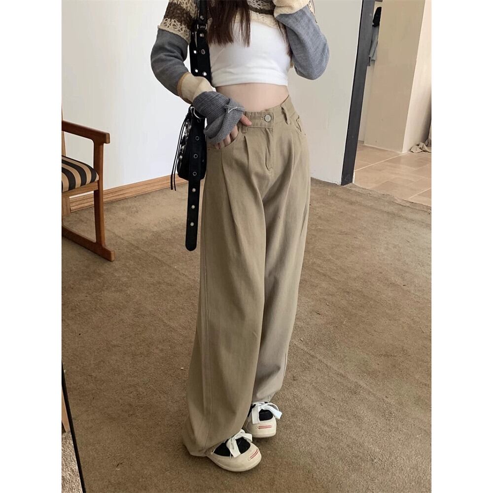 怠惰なスタイル洗浄ジーンズ女性早春レトロ 2024 新しいハイウエストルーズワイドレッグパンツ多用途フロアモップパンツ女性 ハイウェスト スプリング 春物 ワイドパンツ missk94627459732