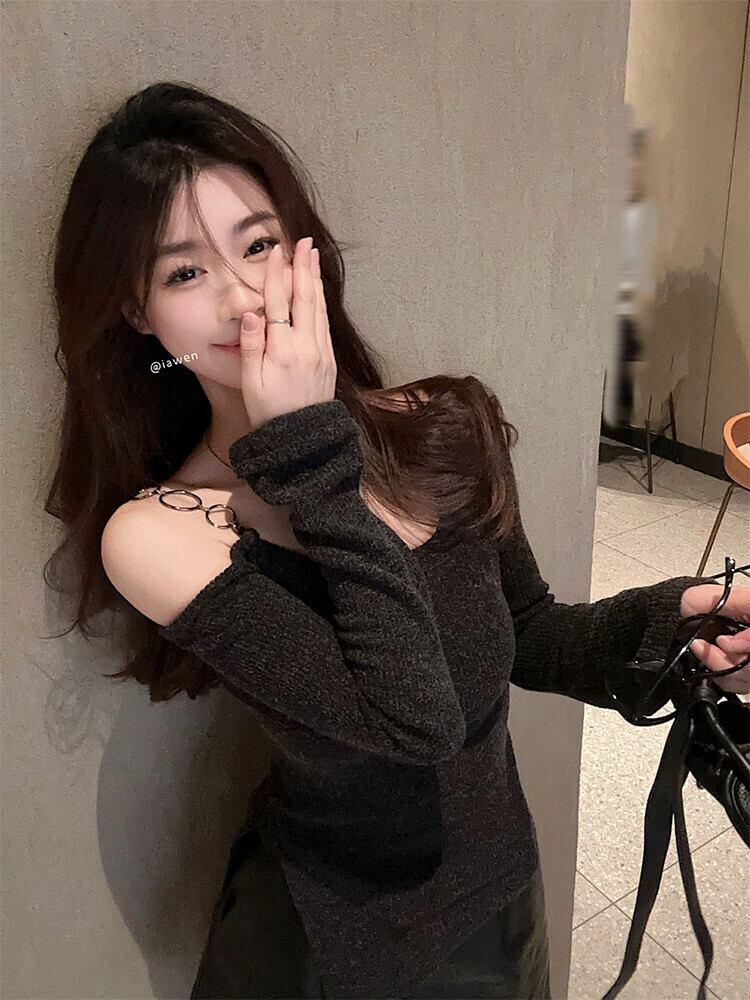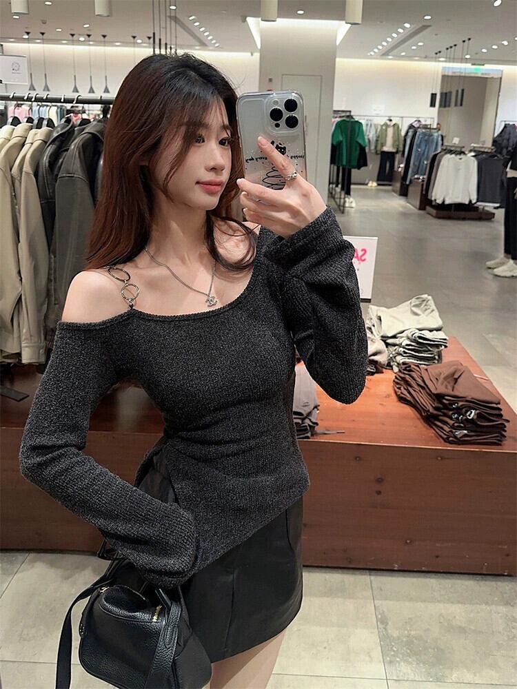 ホット不規則なオフショルダー セーター レディース 春シックなデザインのスリミング ショート ボトム シャツ トップ スプリング 春物 missk89462487292