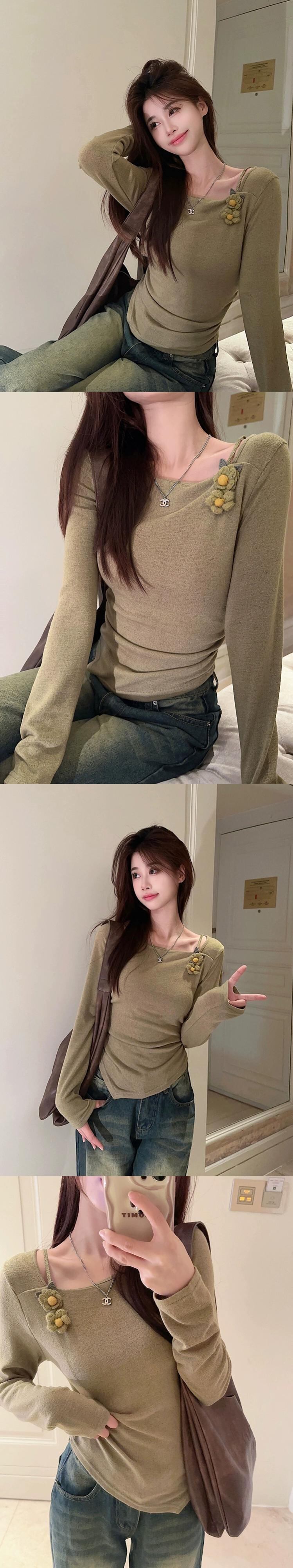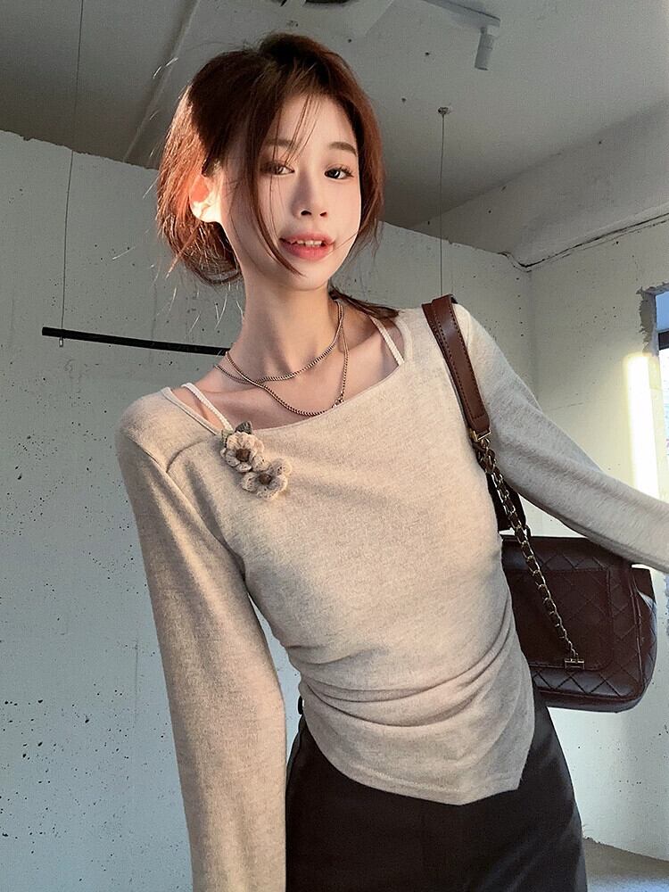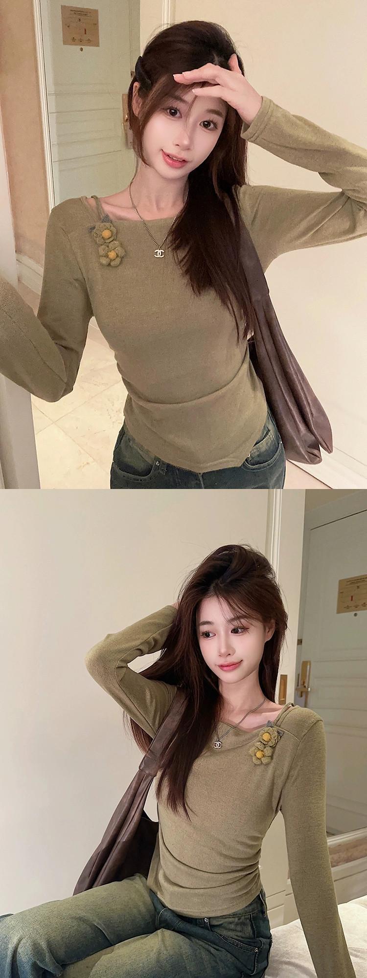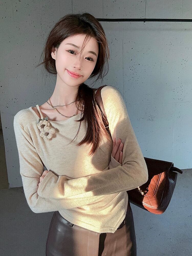 春の優しいスタイルのアプリコット ニット セーター、長袖、スリムフィット インナー レイヤリング シャツ、紅茶風味のシックなトップス ロング レッド スプリング 春物 missk13017966459