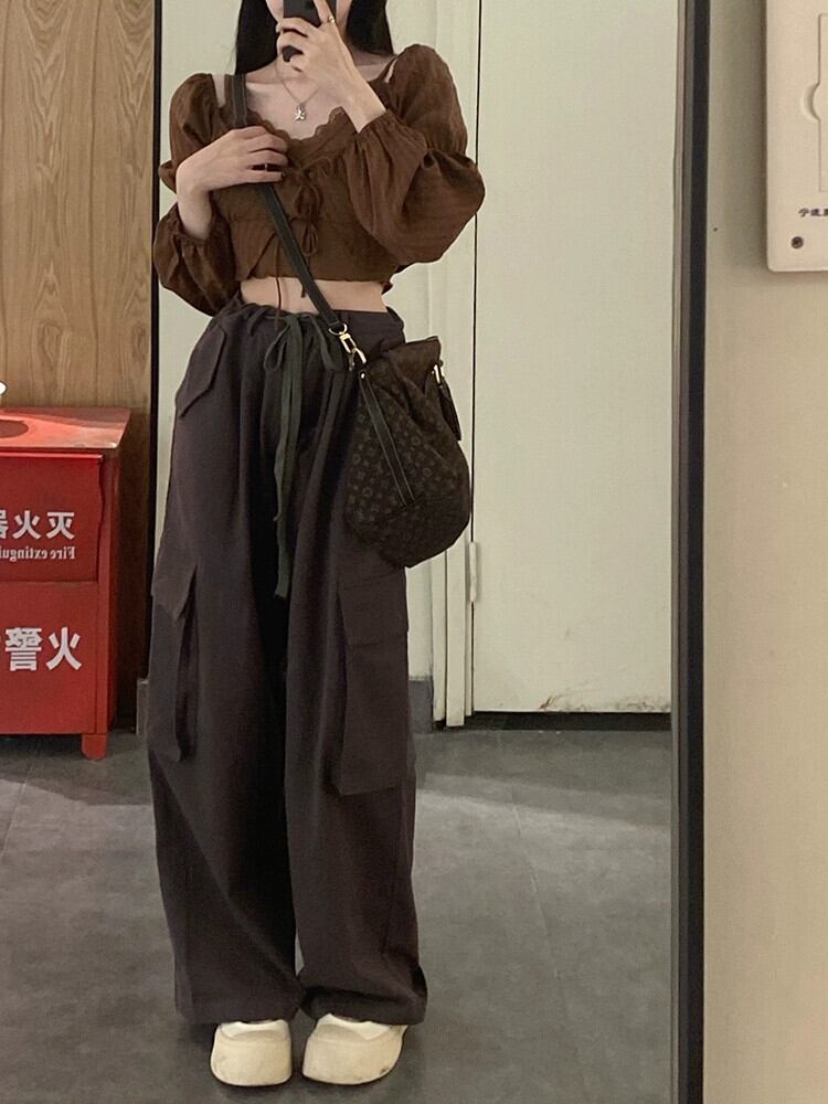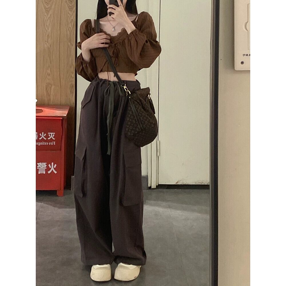 甘くてクールな茶色の長袖シャツの女性の春の新しいスタイル、スリムサスペンダーオーバーオールカジュアルパンツファッションスーツ ロング 大人ガーリー スウィート キュート スプリング 春物 missk6036921394