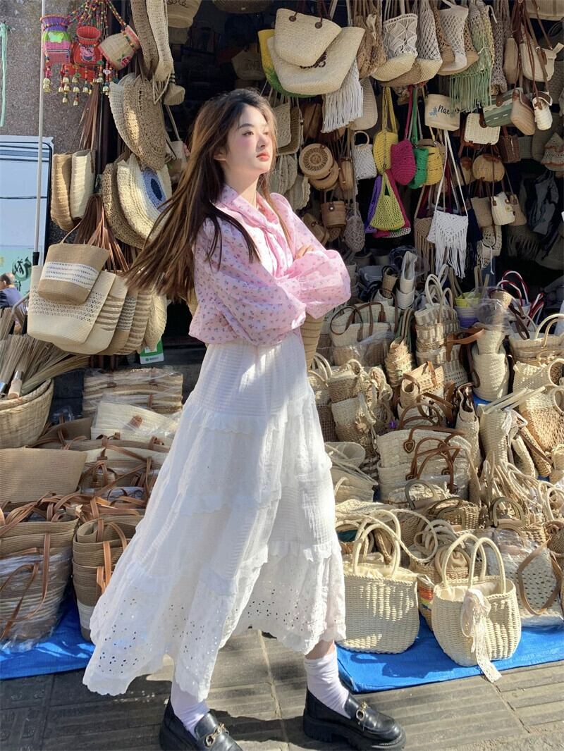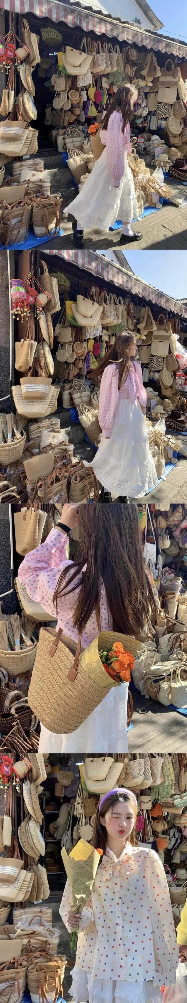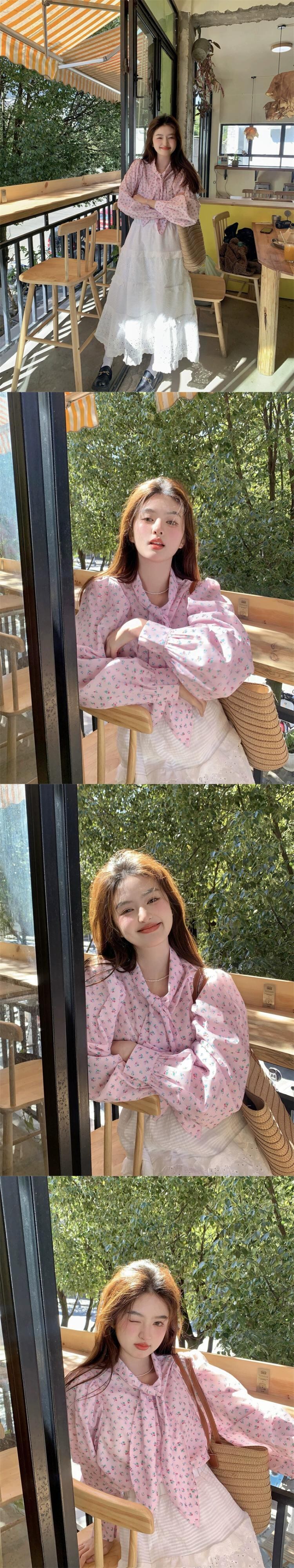 甘い水玉模様のレースアップボウシャツレディース春デザインシックなトップスルーズ長袖シャツ ロング リボン 大人ガーリー スウィート キュート カジュアル スプリング 春物 missk82286898650
