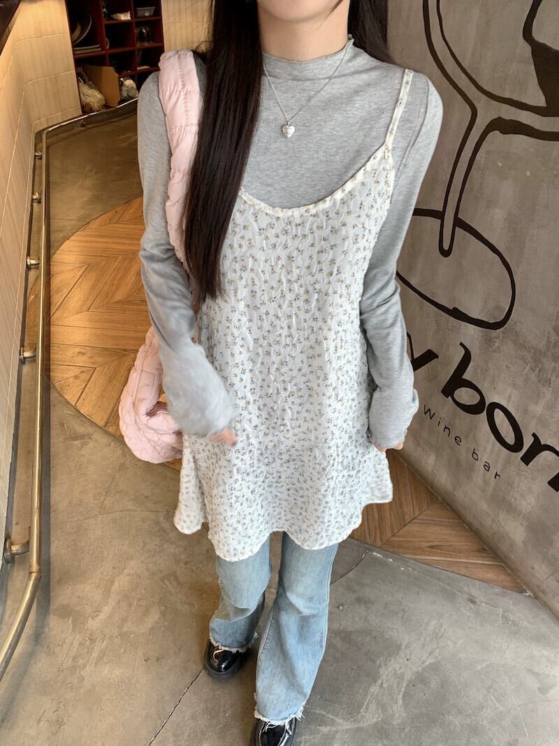 優しく甘い花柄サスペンダーワンピース レディース 春 年齢軽減 オーバーレイ シースルー 薄手 Aライン ショートスカート 小柄な人 大人ガーリー スウィート キュート カジュアル スプリング 春物 missk48257283057