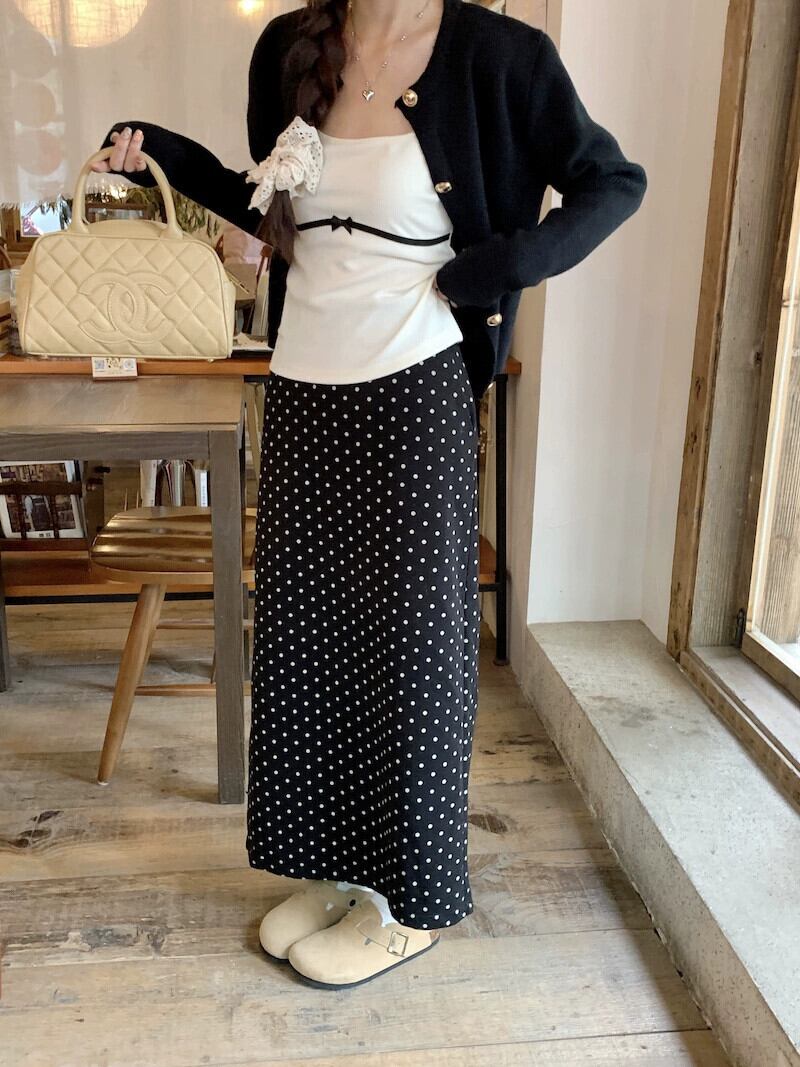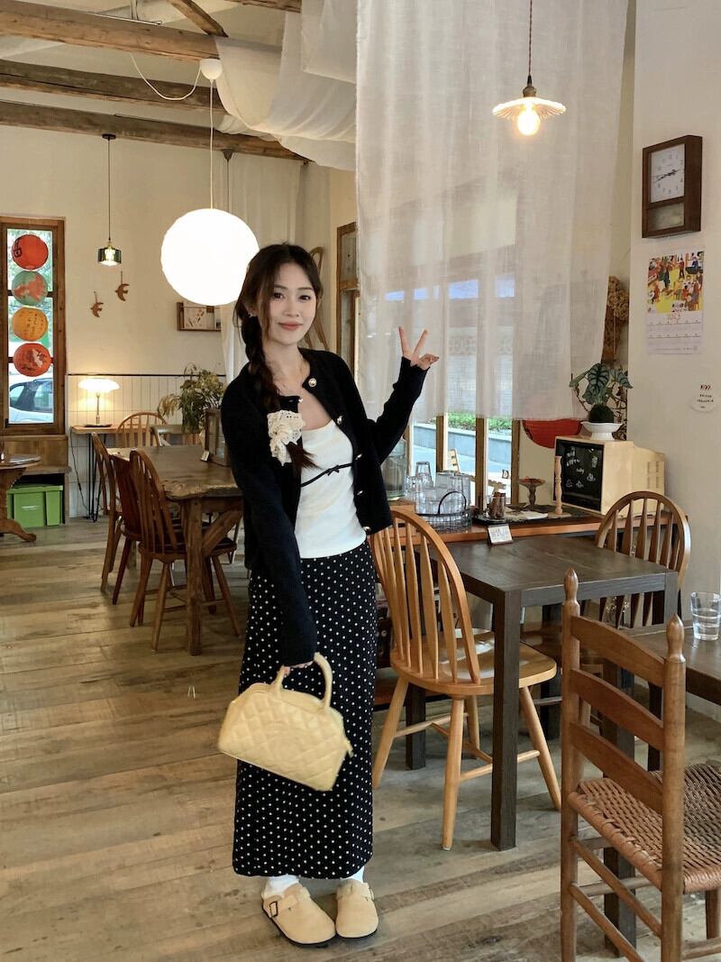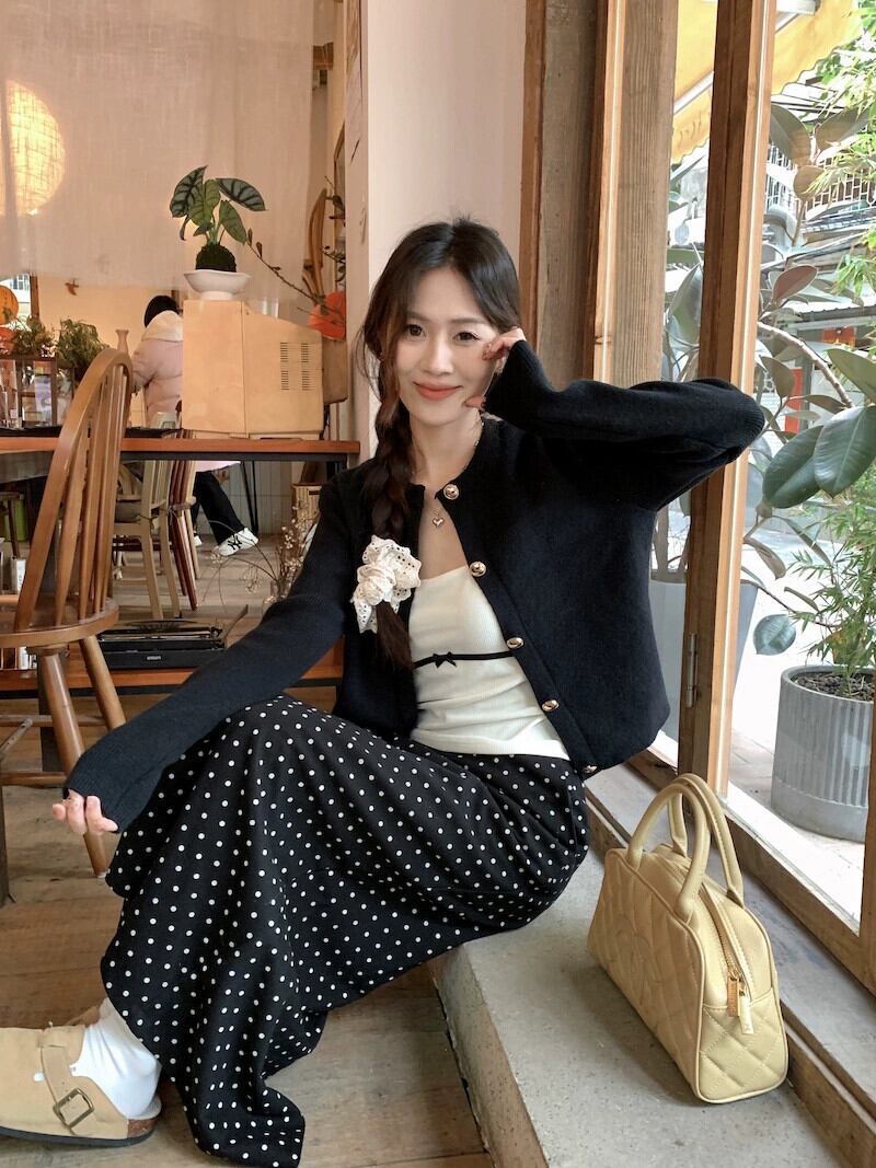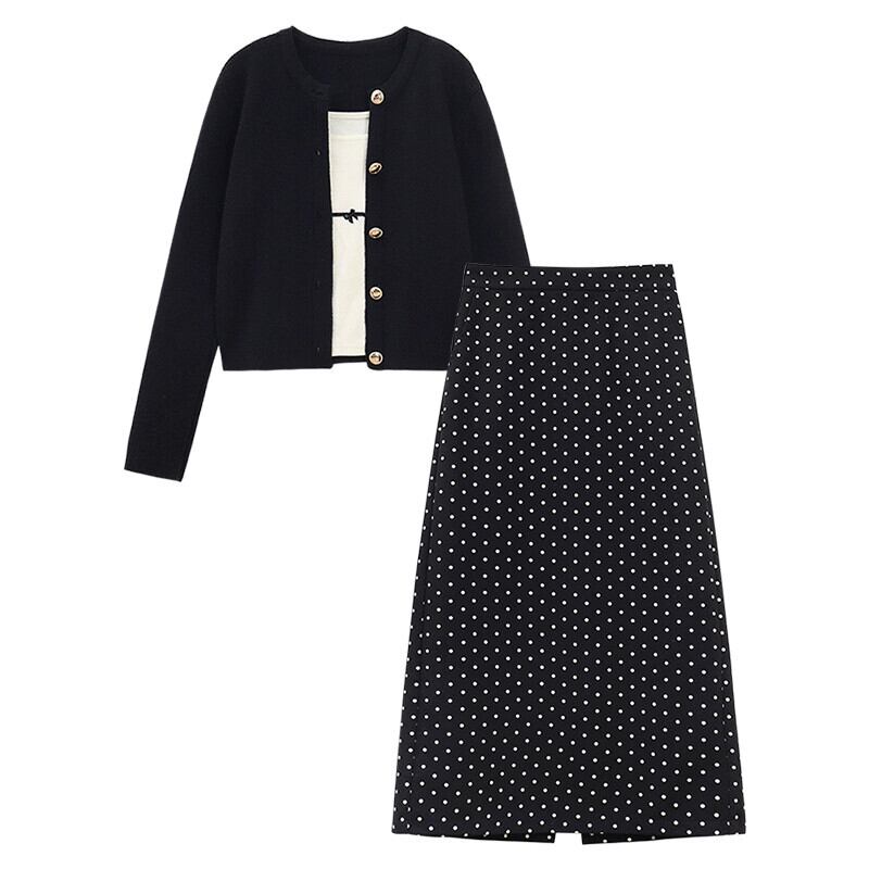 Xiaoxiangfeng スーツ女性春スタイルショートニットカーディガンキャミソール水玉スカートファッショナブルな 3 点セット スプリング 春物 missk23042242187