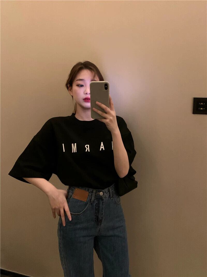 白半袖Tシャツレディース2024年春新デザインアメリカンレタールーズミドル丈トップスイントレンド ホワイト スプリング 春物 missk14272839390
