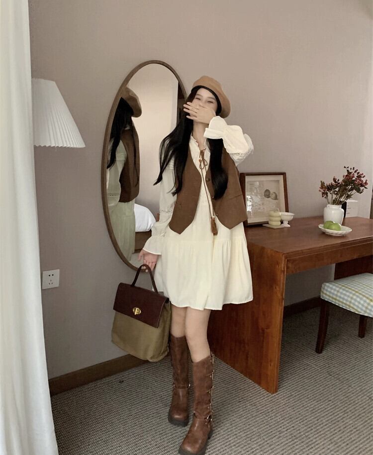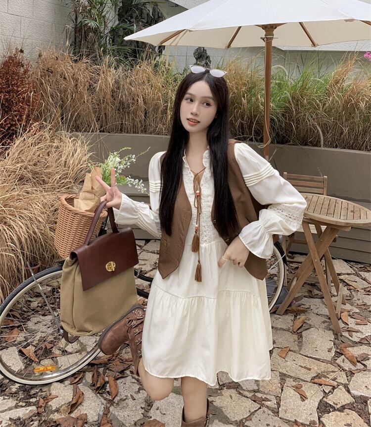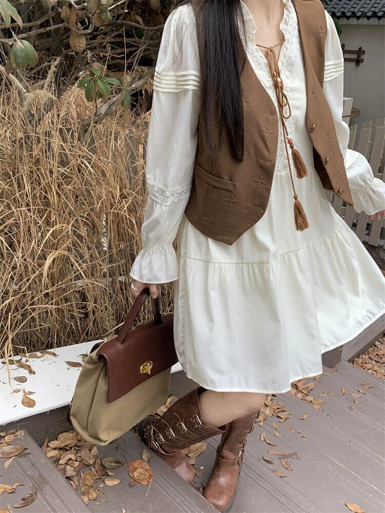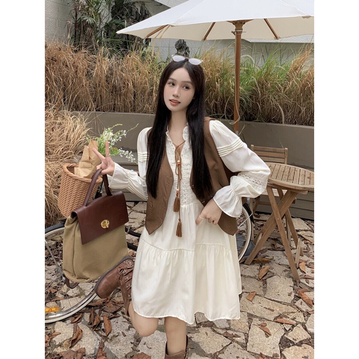 フランスの中空レースデザイン、エレガントな長袖ドレス+ベスト女性、2024年春の新しいファッションスーツ ロング スプリング 春物 missk26870643688