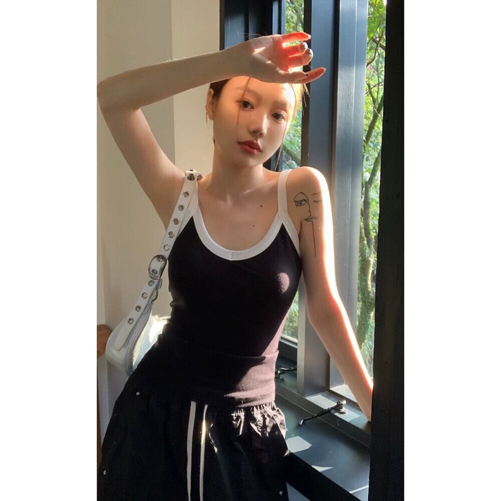 ホットコントラストカラーのインナーキャミソール女性の 2024 年春の新しいファッションスリムスリムショートアウターボトリングシャツ スプリング 春物 missk50020883061