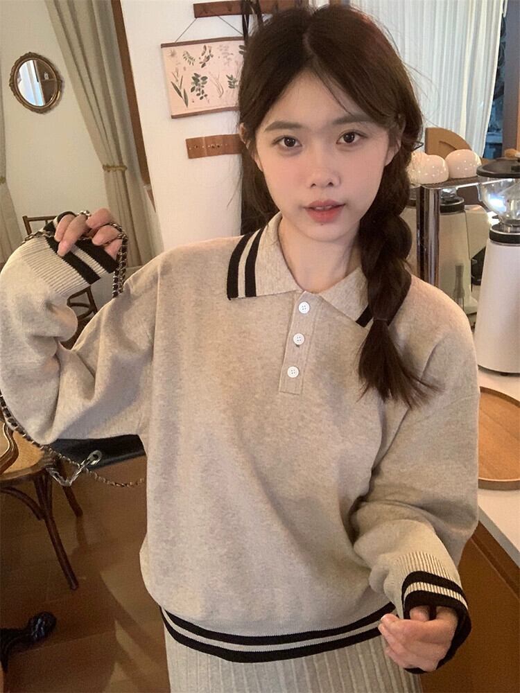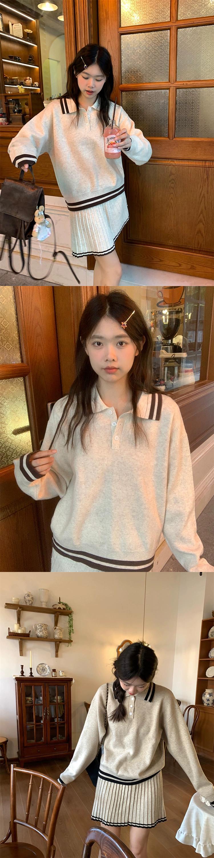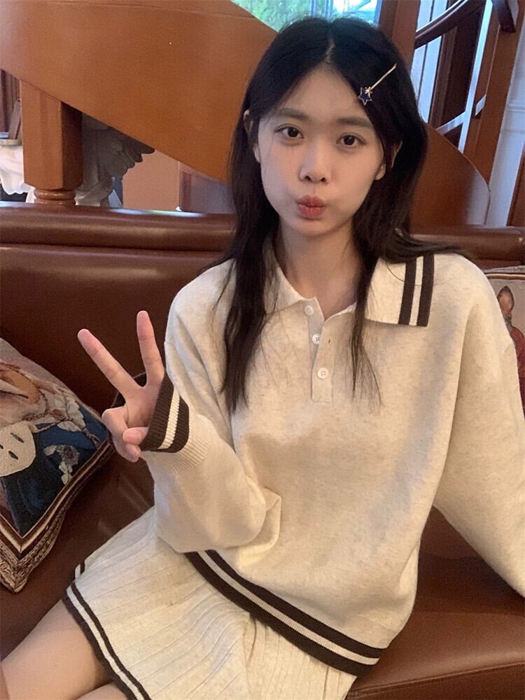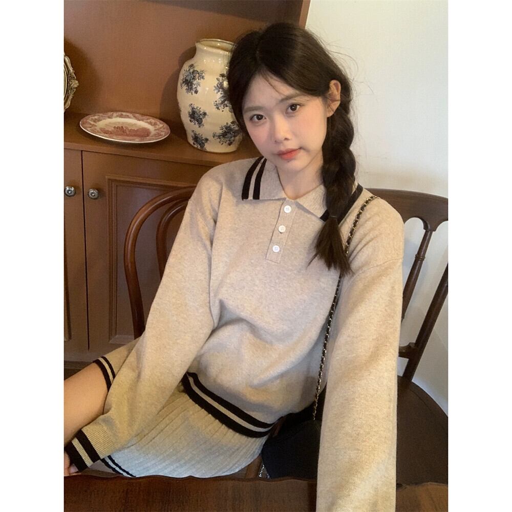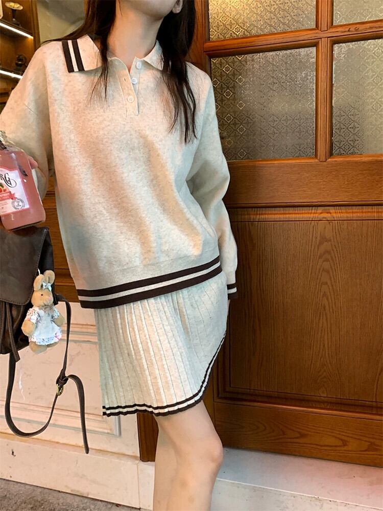 スタイル ニット スーツ レディース 春 老化防止 ポロカラー セーター スリミング ハイウエスト プリーツ スカート 2 点セット スプリング 春物 missk48741009731