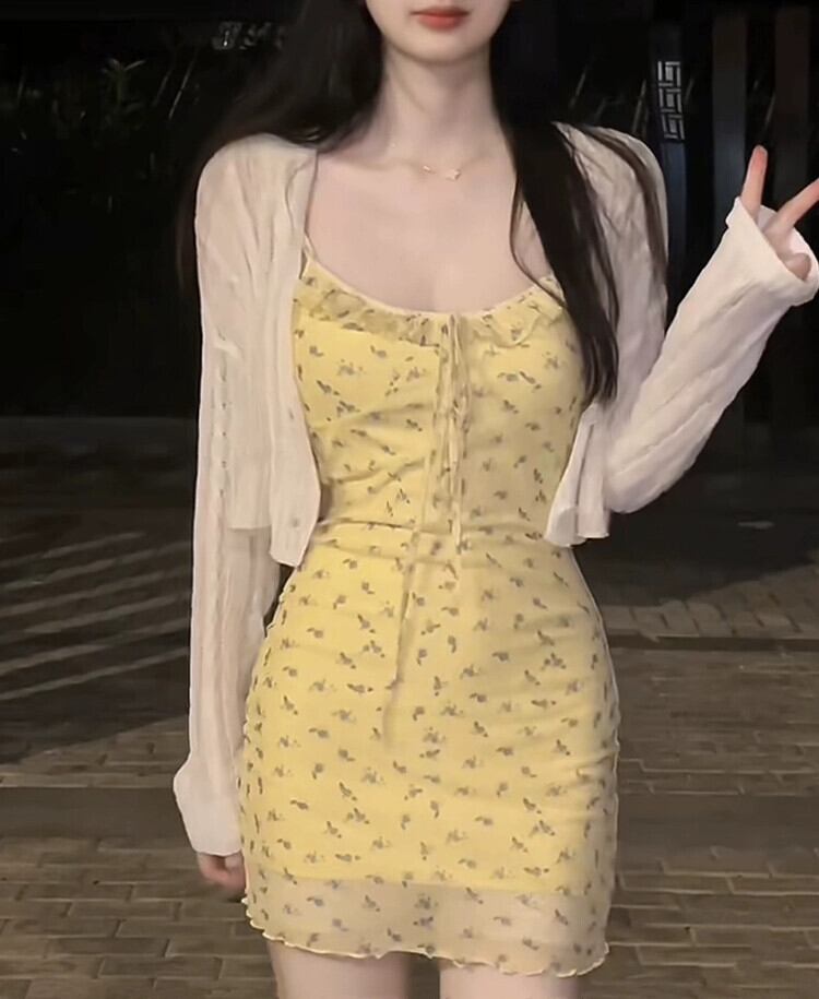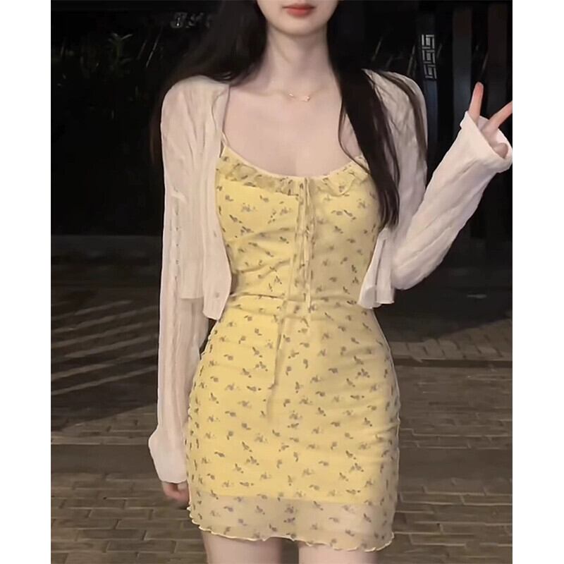 春の優しいスタイルの花柄サスペンダードレス女性、甘い気質のウエストバッグヒップスカート、小さな新鮮な黄色のショートスカート 大人ガーリー スウィート キュート カジュアル スプリング 春物 missk19131062835