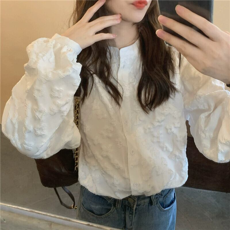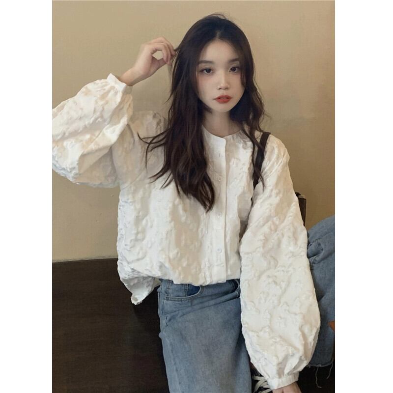 白シャツ レディース トップス 2024 春新作 優しいスタイル レースデザイン ニッチスタイル パフスリーブシャツ ホワイト スプリング 春物 missk66744554777