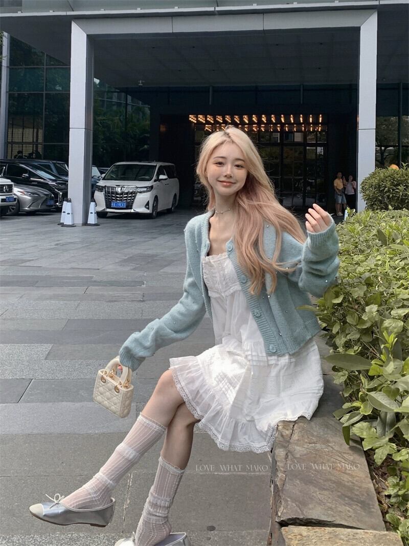 白いレースのスプライシングサスペンダードレス女性春フレンチ優しいスタイルのスカート海辺の休暇Aラインスカートショートスカート ホワイト スプリング 春物 missk6523996336