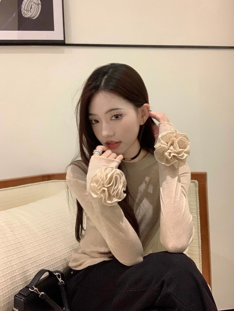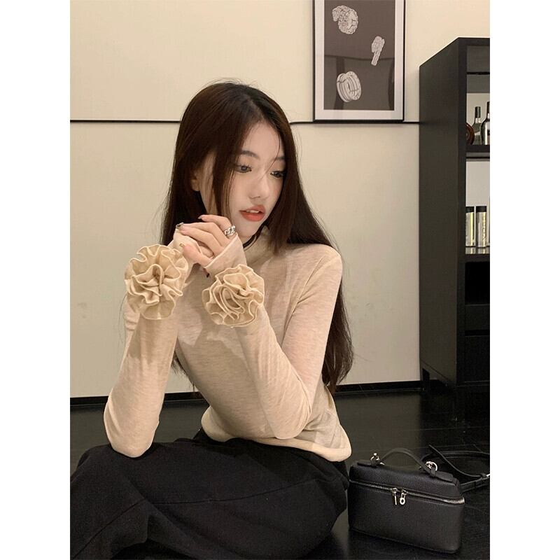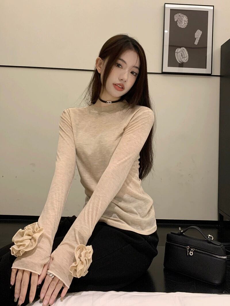 春の立体的な花の長袖Tシャツの女性、甘くてスリム、ボトムシャツ、シックなトップ ロング 大人ガーリー スウィート キュート カジュアル スプリング 春物 フラワーデザイン missk21196445932