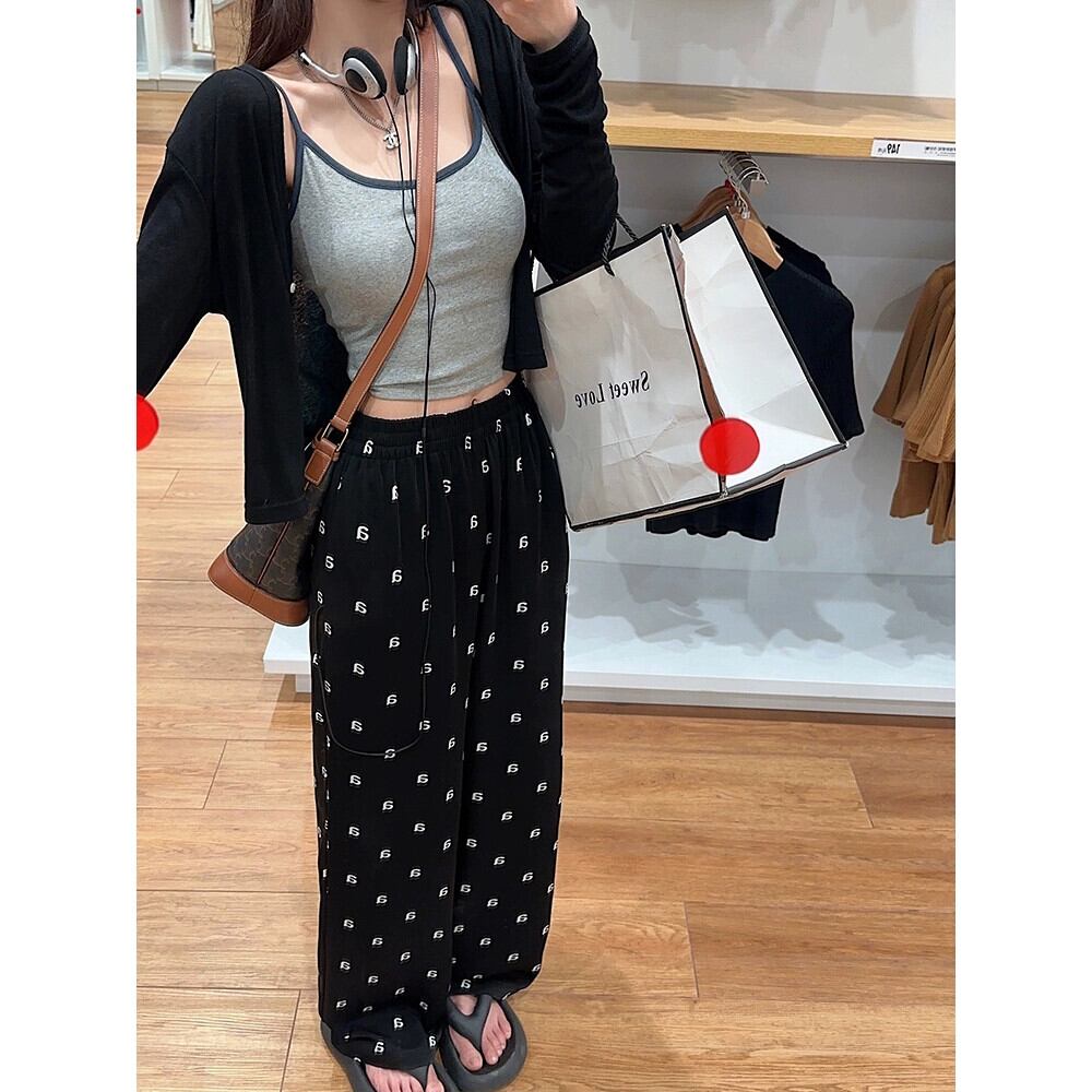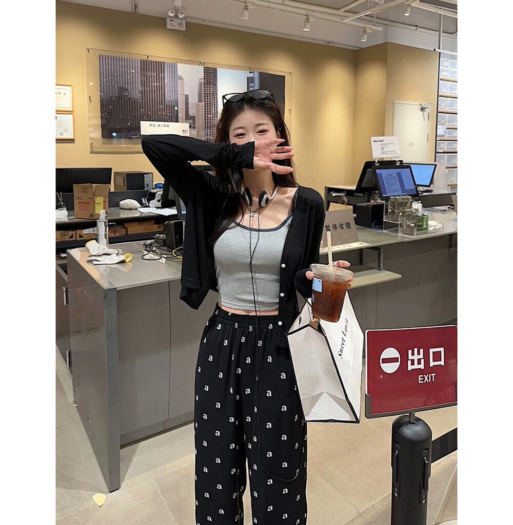 甘辛スタイル スーツ レディース 春 日焼け止め カーディガン ジャケット キャミソール レタープリント ワイドレッグ パンツ 3点セット 大人ガーリー スウィート キュート カジュアル スプリング 春物 ワイドパンツ missk88935762208