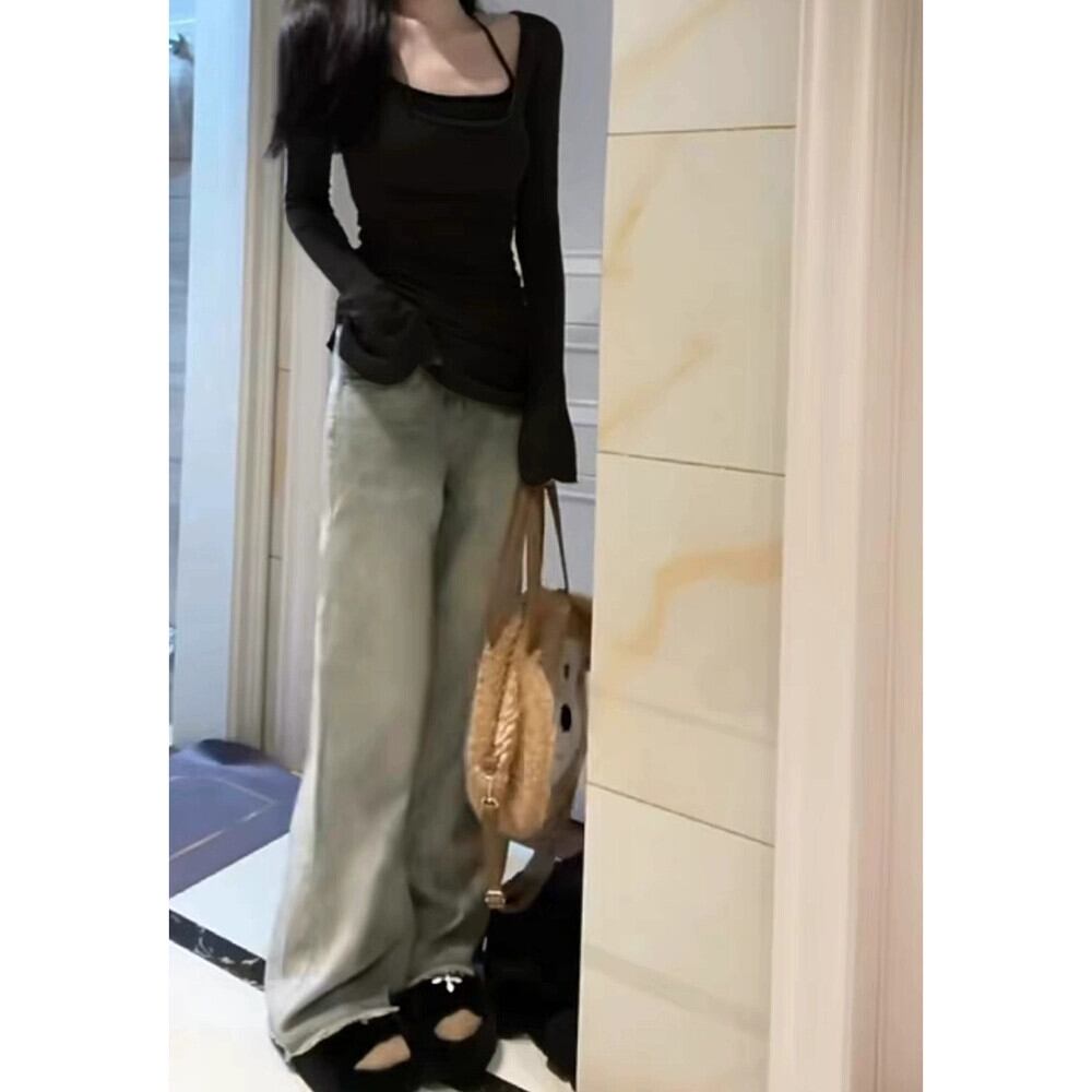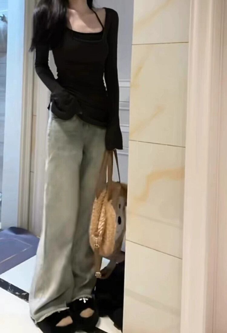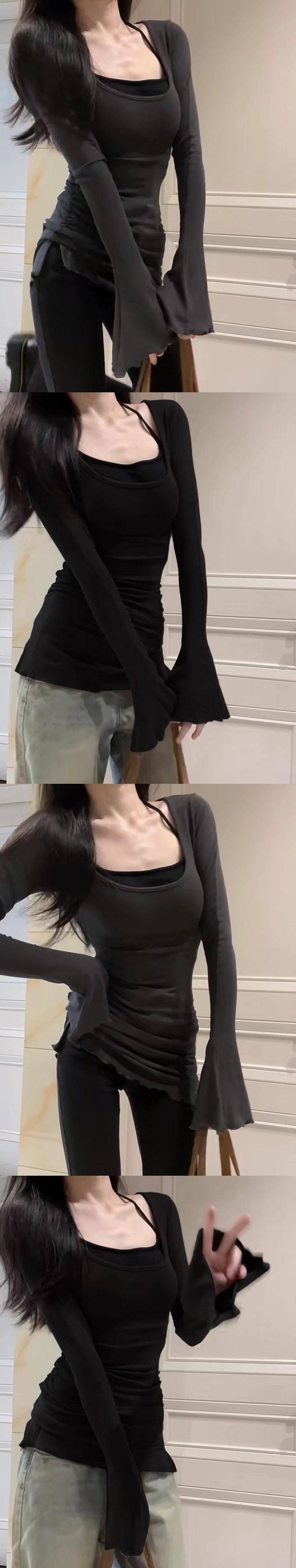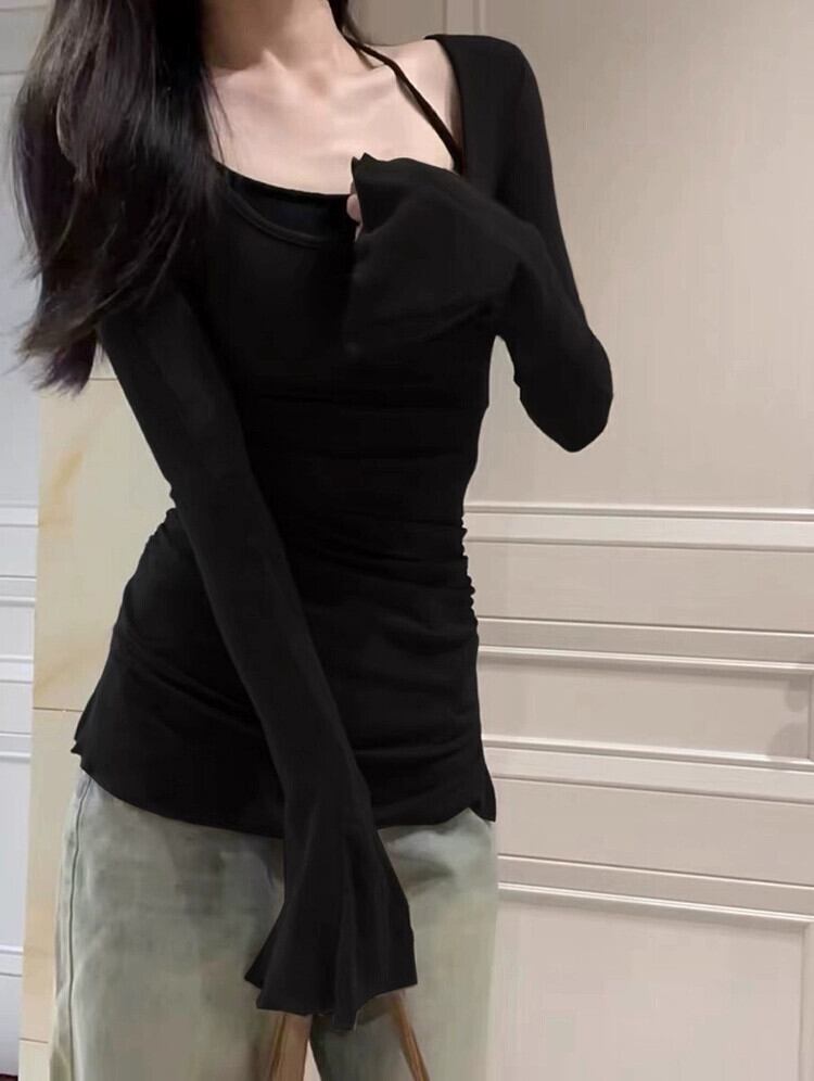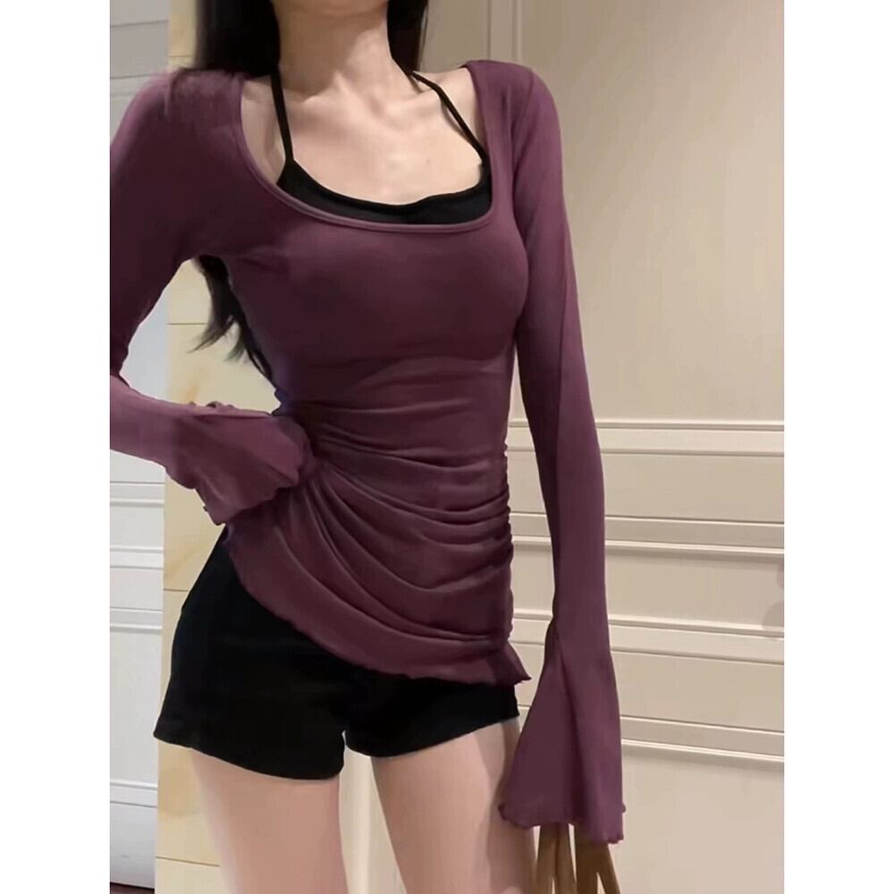 純粋な欲望ベルスリーブ Tシャツ女性の春 2024 不規則な気質スクエアネックスリムホットガールトップ スプリング 春物 スクウェア missk72597584253