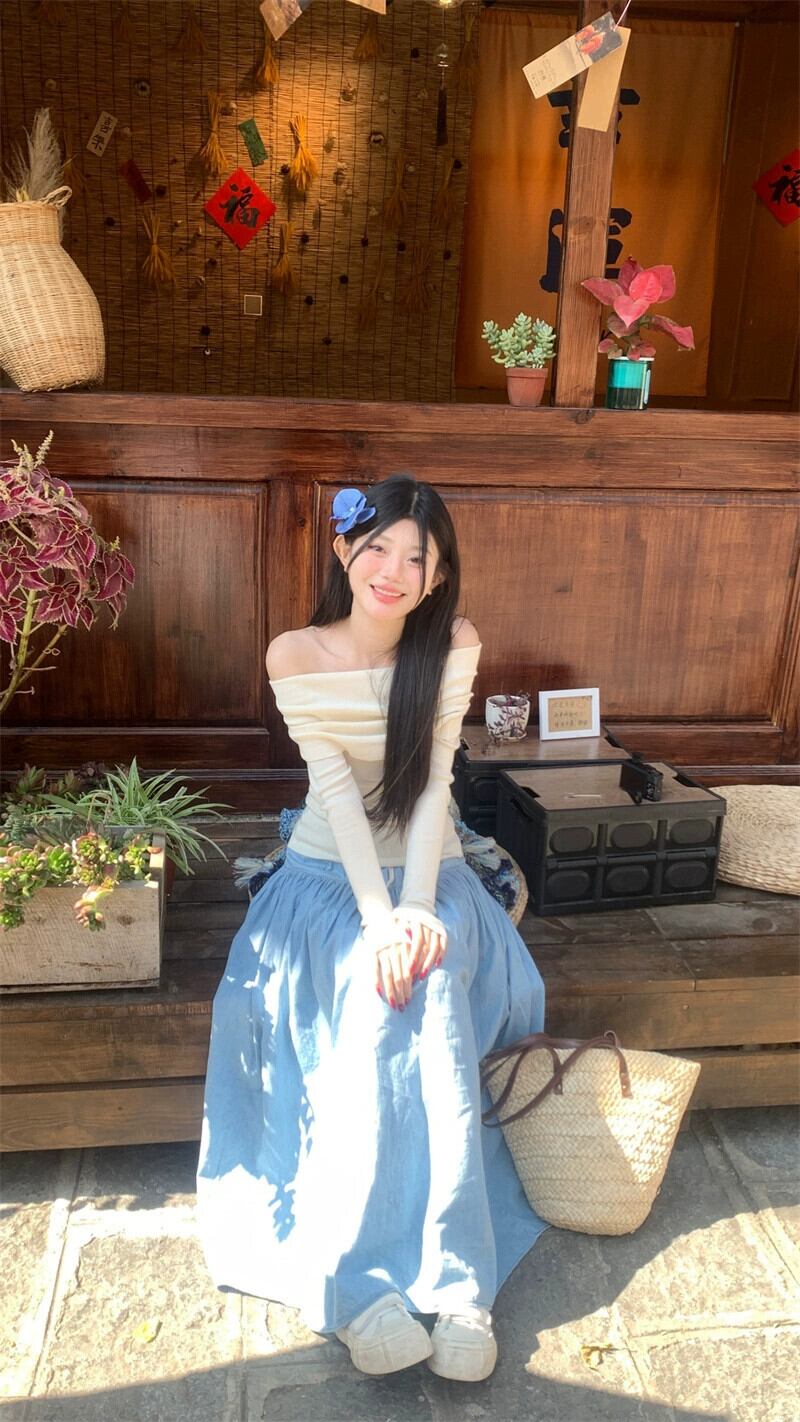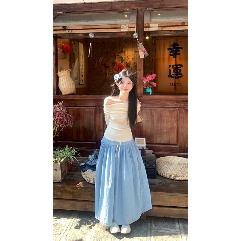 甘辛スタイルスーツ女性の春の気質ワンショルダー長袖 Tシャツトップウエスト A ラインスカート 2 点セット ロング 大人ガーリー スウィート キュート カジュアル スプリング 春物 Aライン missk66588779197