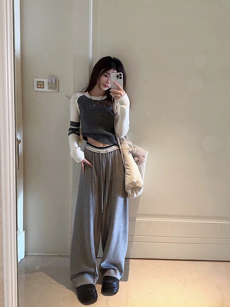 色:ホワイトトップ,グレートップ,黒いズボン,グレーパンツ
