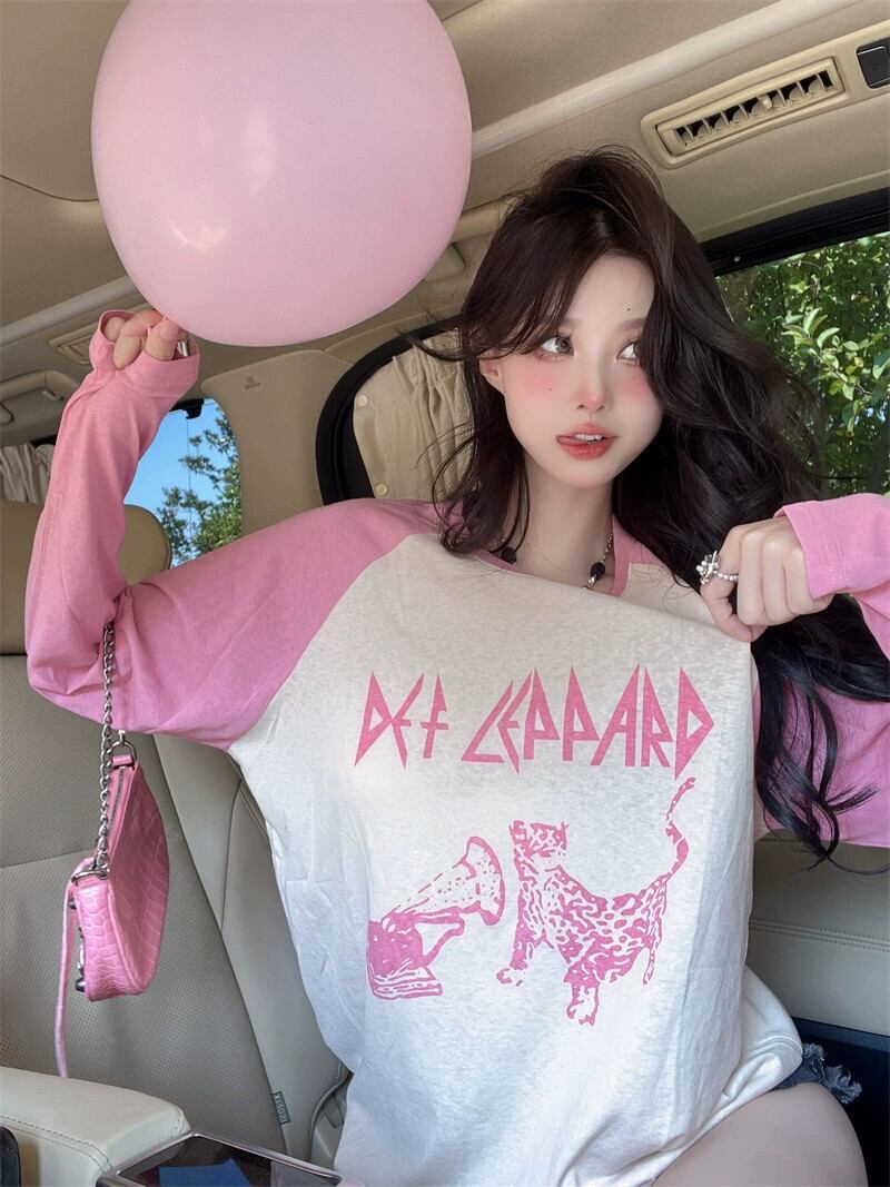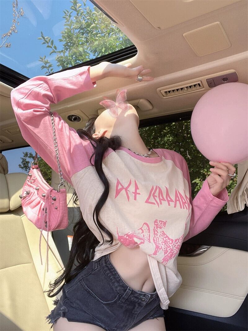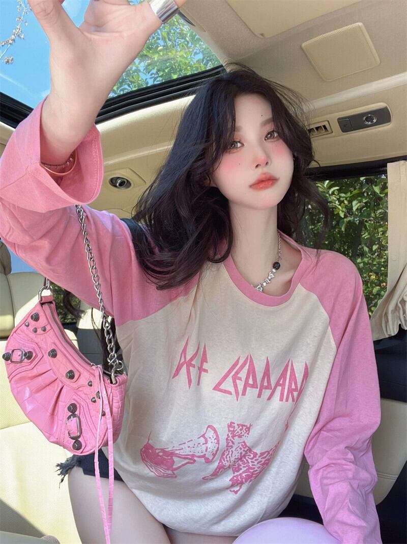 Sweet Spice Girl レターカラーブロック長袖日焼け止め Tシャツ女性の春 2024 ルーズプリントトップトレンディ ロング 大人ガーリー スウィート キュート カジュアル スプリング 春物 missk32754652613