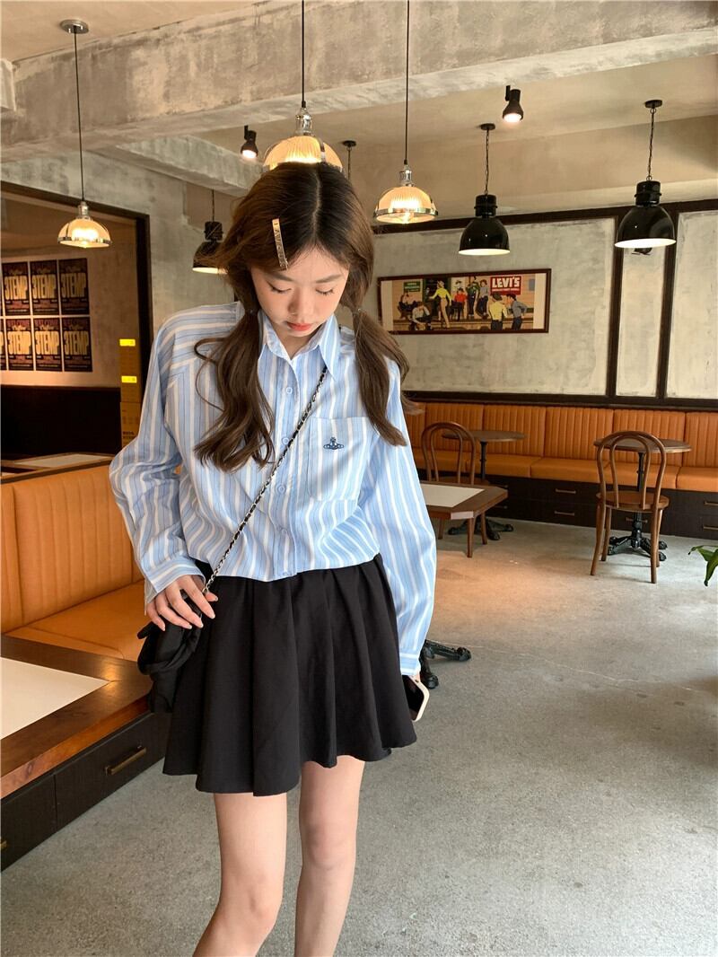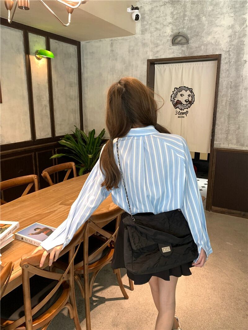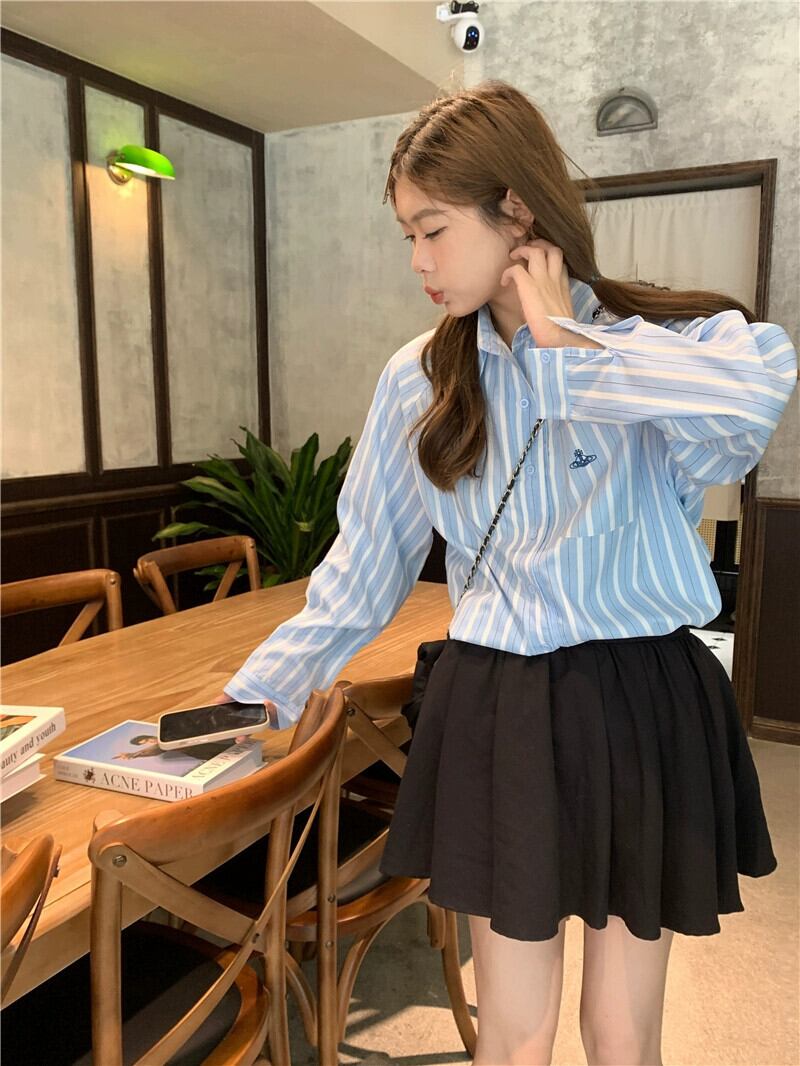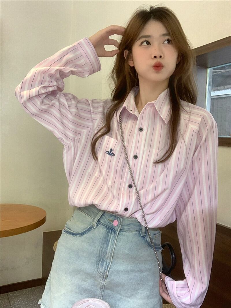 ストライプ長袖シャツ レディース 2024 春 ポロネックシャツ シックで美しいトップス ロング スプリング 春物 missk64708464342