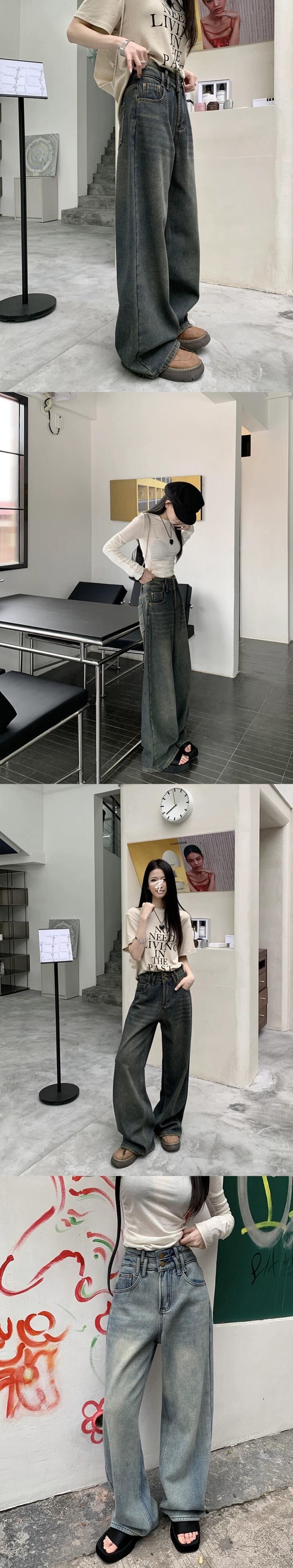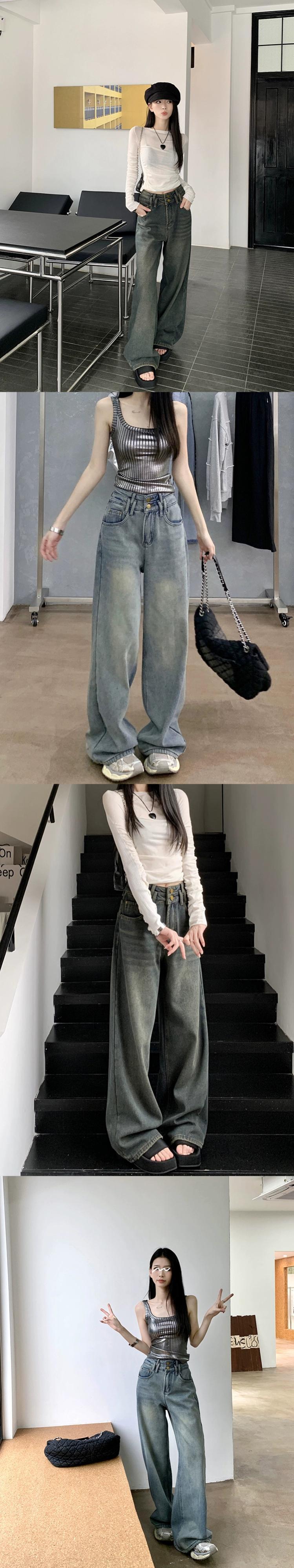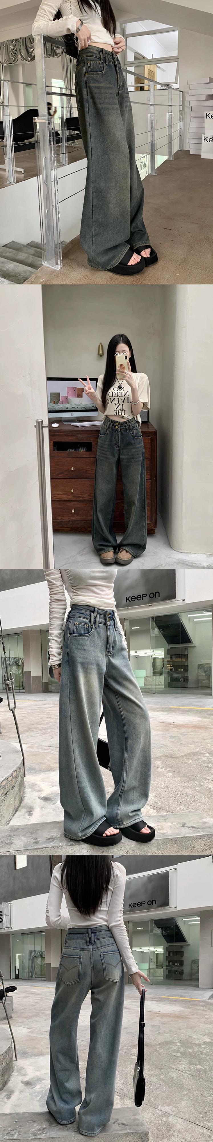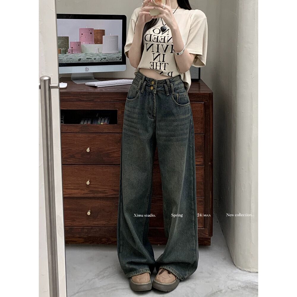 レトロウォッシュブルージーンズ2024年初春新作ハイウエストルーズワイドレッグパンツストレートレッグパンツレディースシック スプリング 春物 missk87427198993