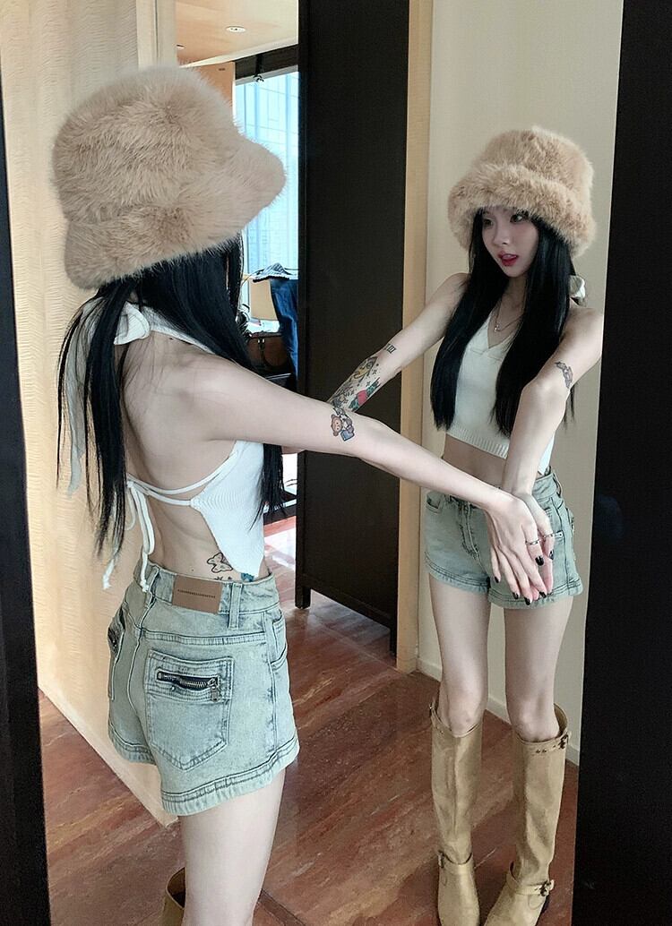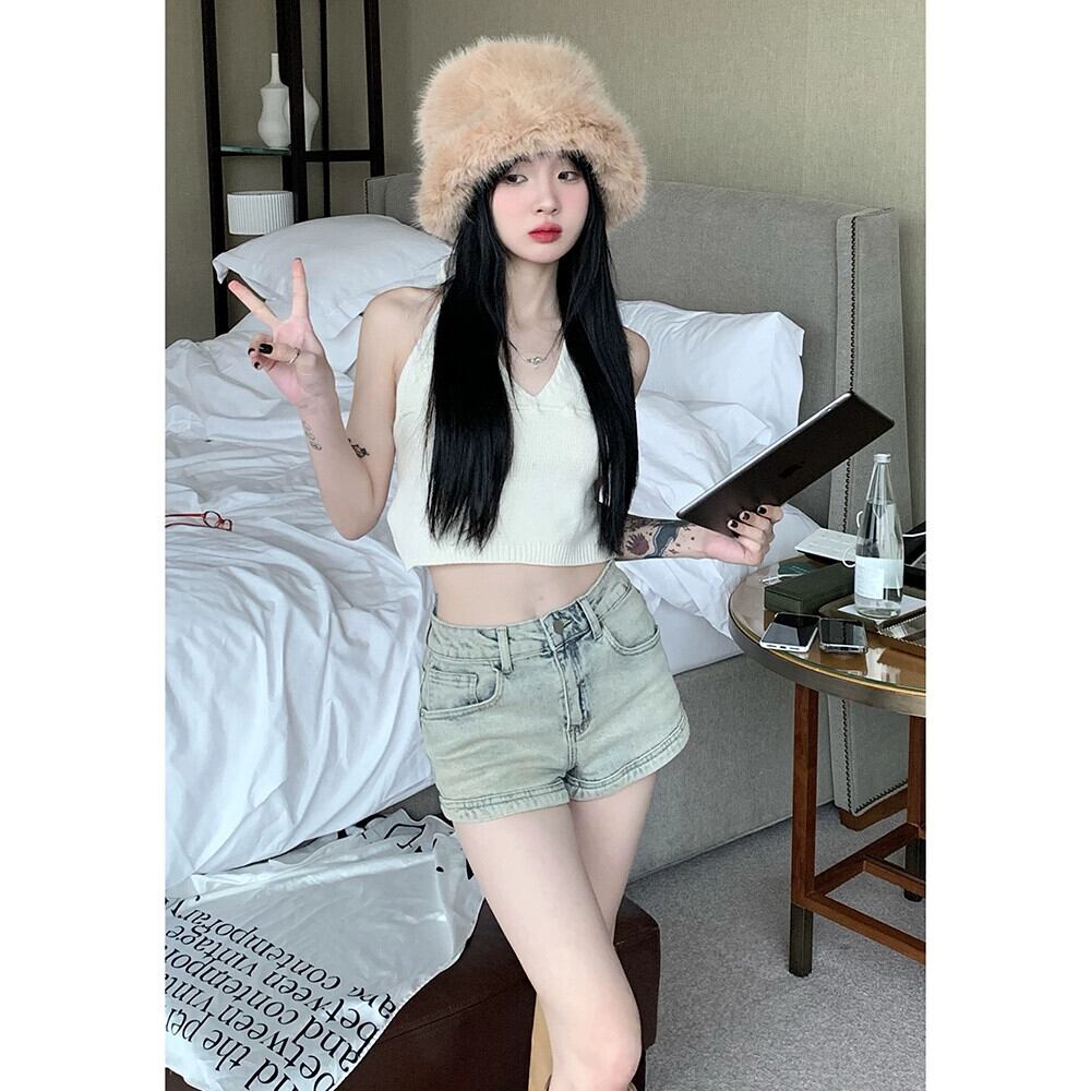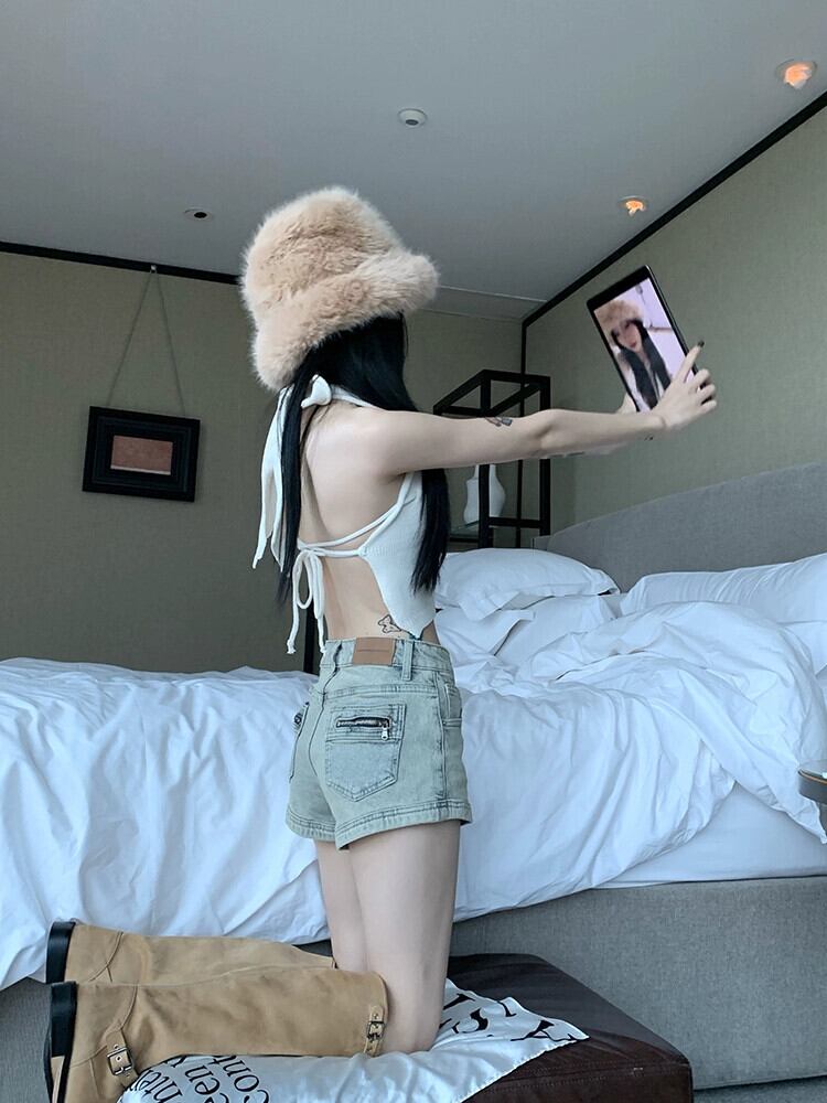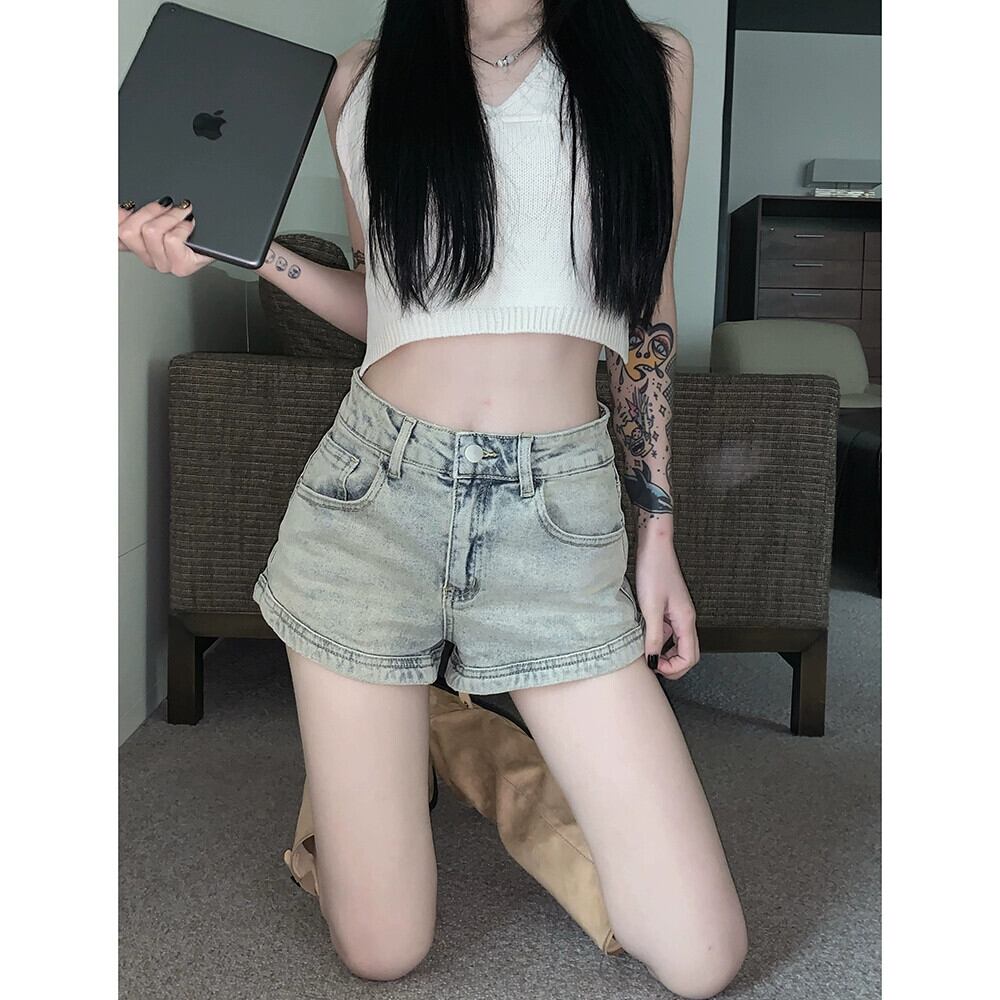 ホットタイトデニムショートパンツレディース春の新ジッパーデザインアメリカンレトロハイウエストスリムアウターパンツ スプリング 春物 ショーツ ブルマー missk40235419324