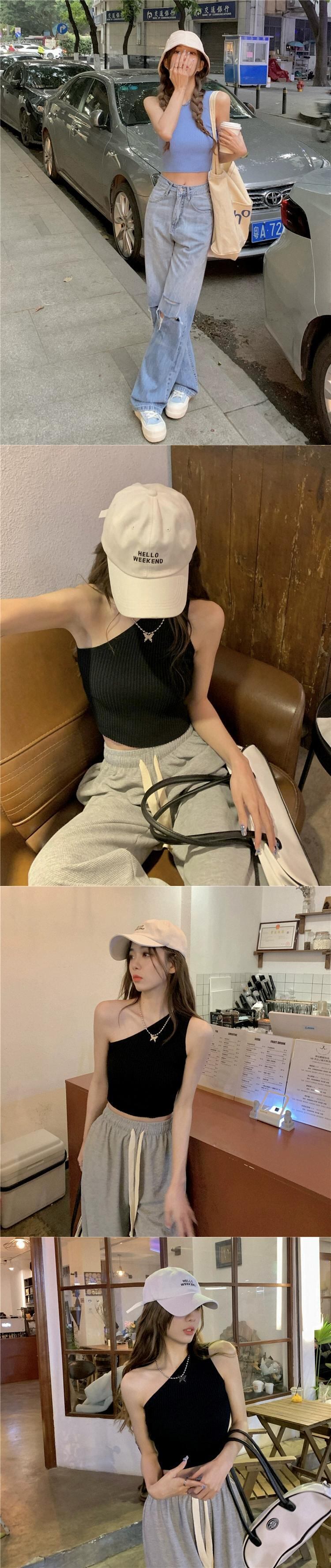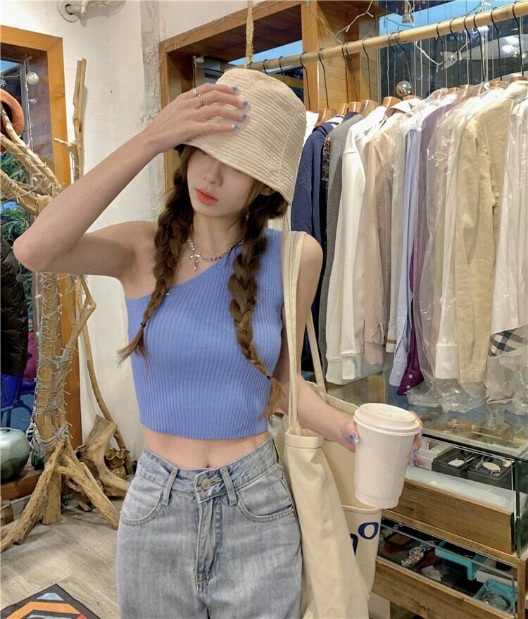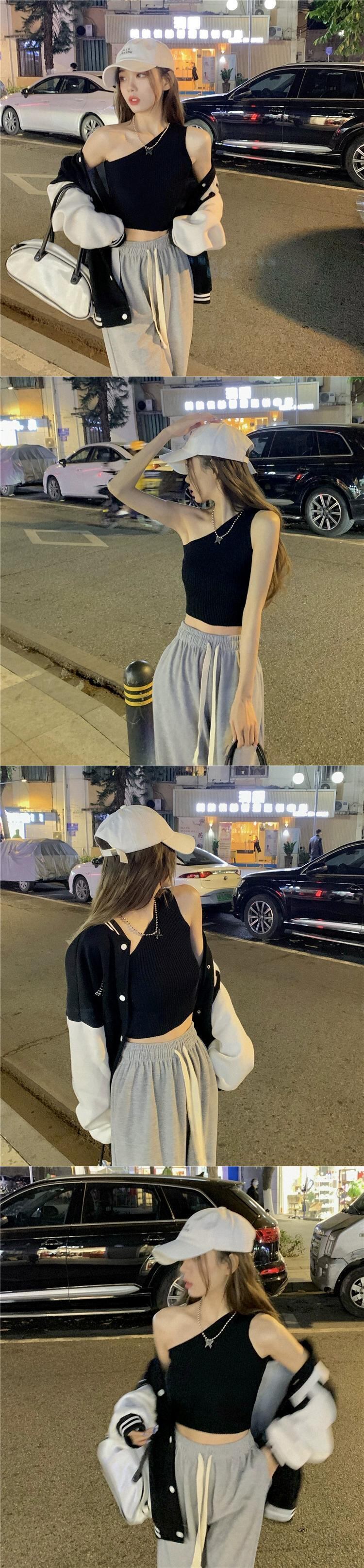 ホットタイトフィットデザインオフショルダーベスト女性夏 2024 新しい不規則なスリムボトムシャツショートトップ サマー 夏物 missk17621509974