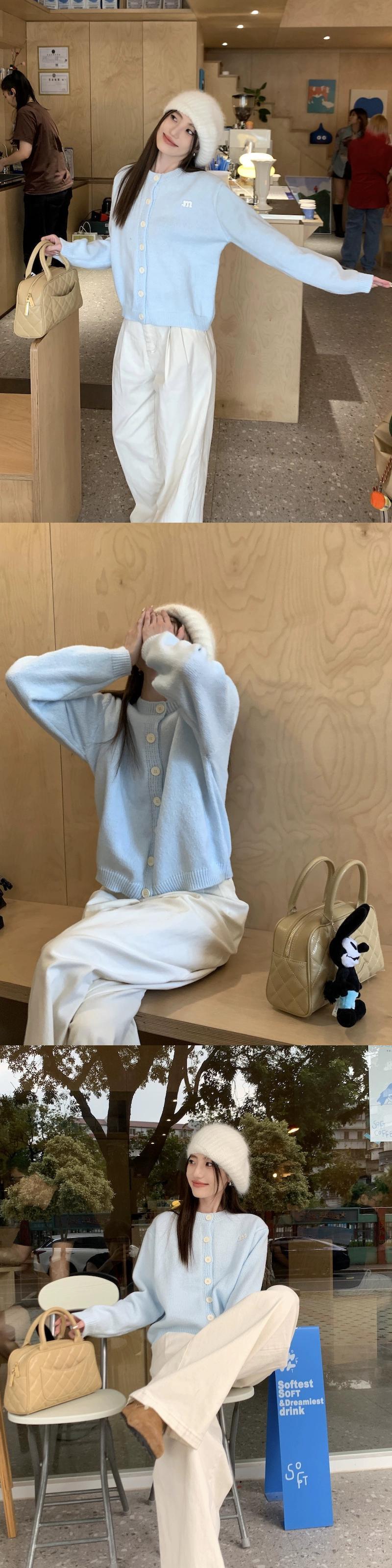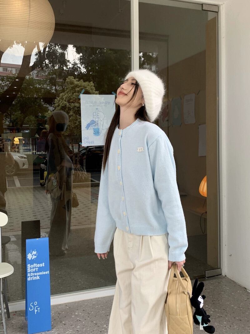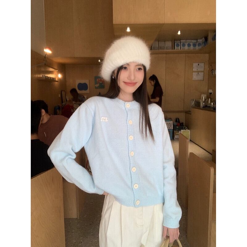 胸 fufu ライトブルーのセーターの女性の春と秋 2024 新しいソフトで優しいスタイルのルーズショート長袖ニットカーディガン ロング スプリング 春物 オータム 秋物 missk96050673549