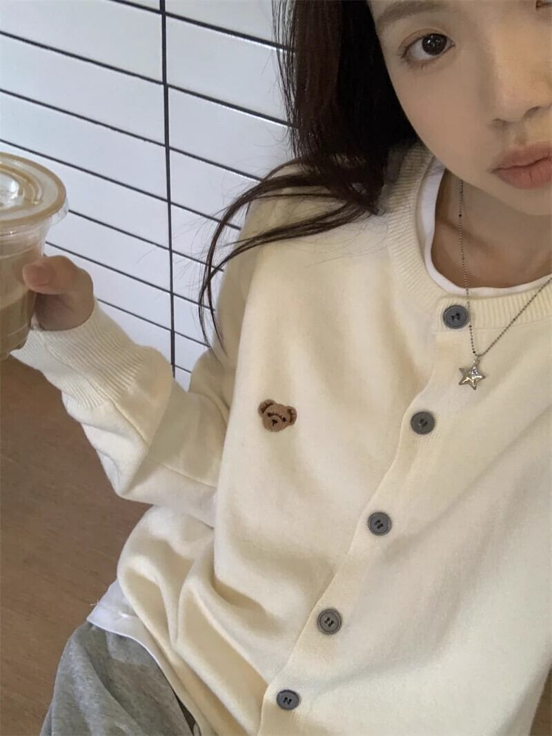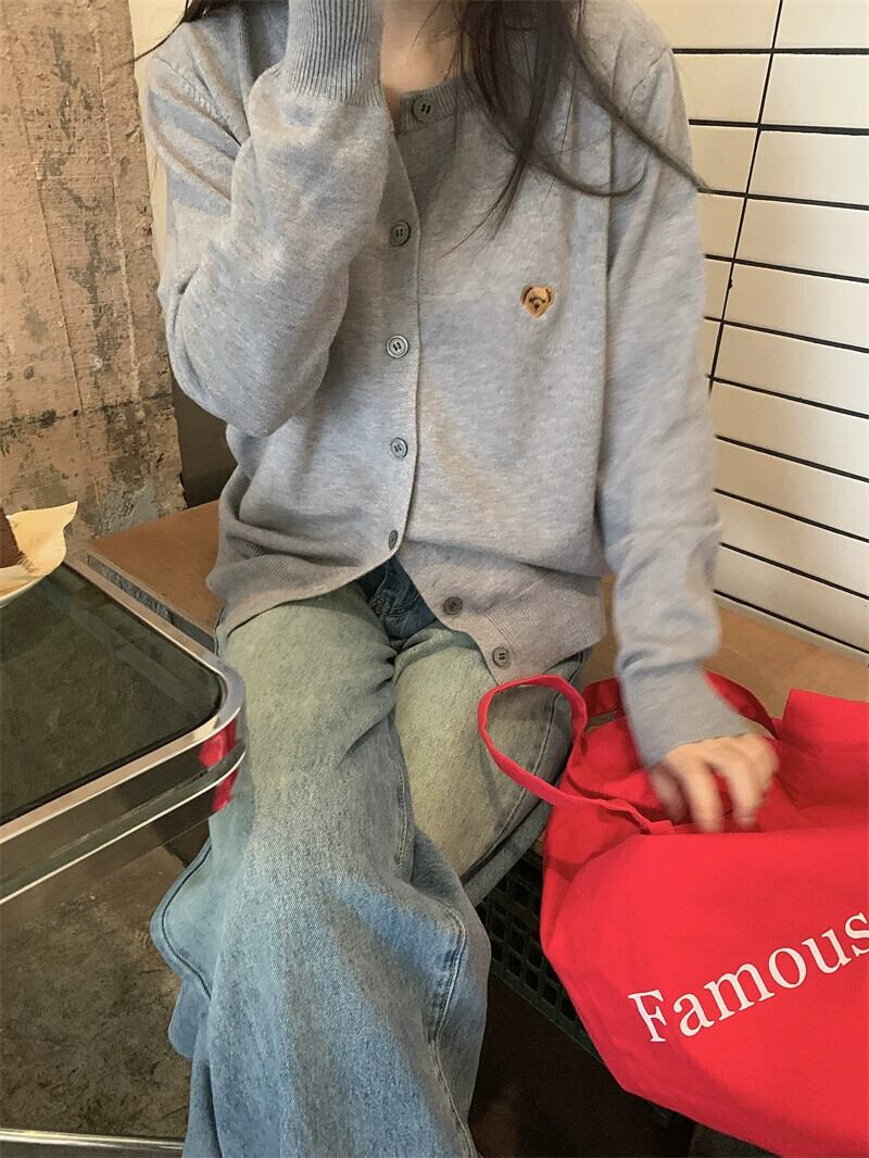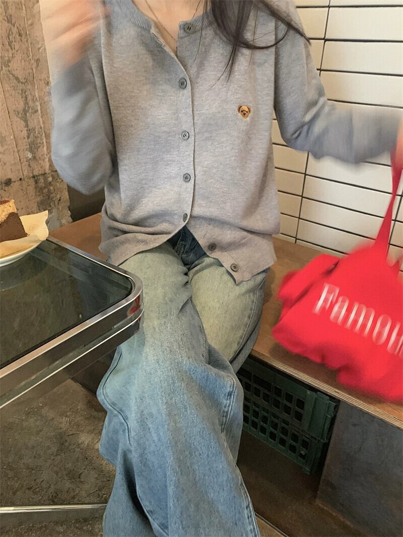 怠惰なスタイル刺繍クマのセーターの女性の春と秋 2024 新しいレトロなソフトとワックスのようなルーズ長袖ニットカーディガントップ ロング レッド スプリング 春物 オータム 秋物 missk20586550562
